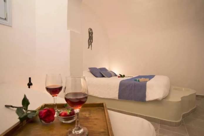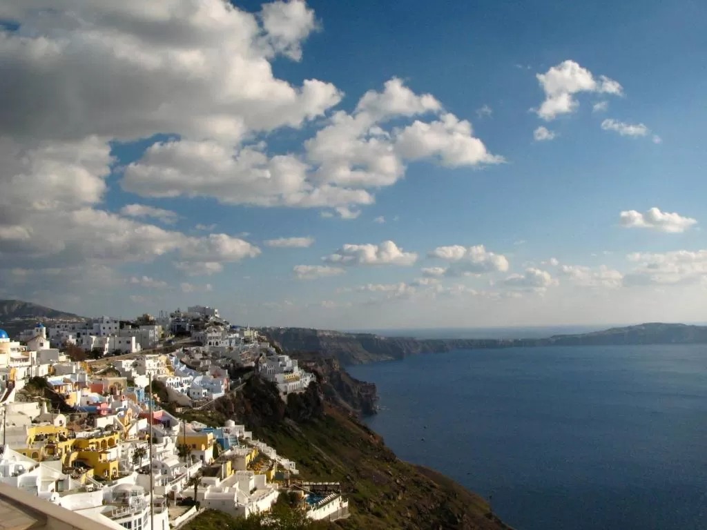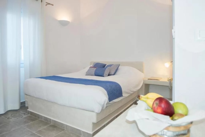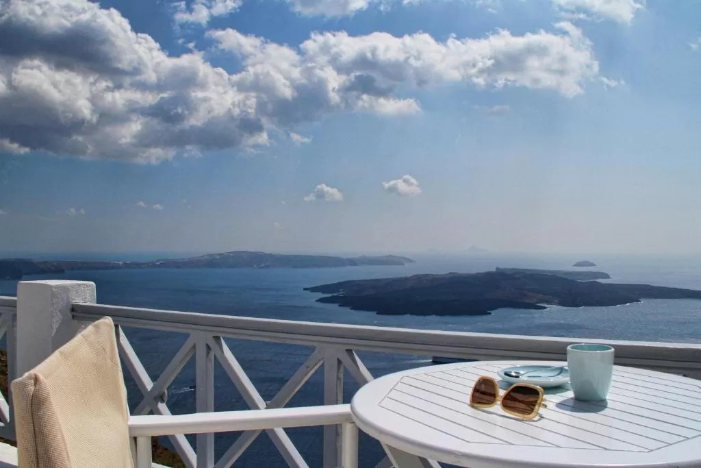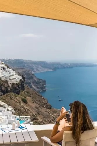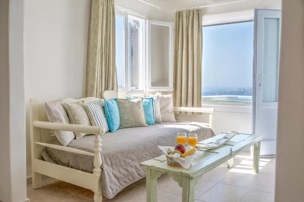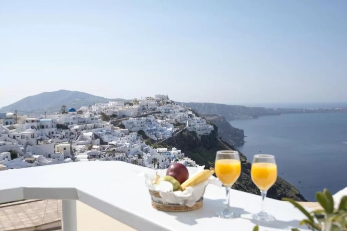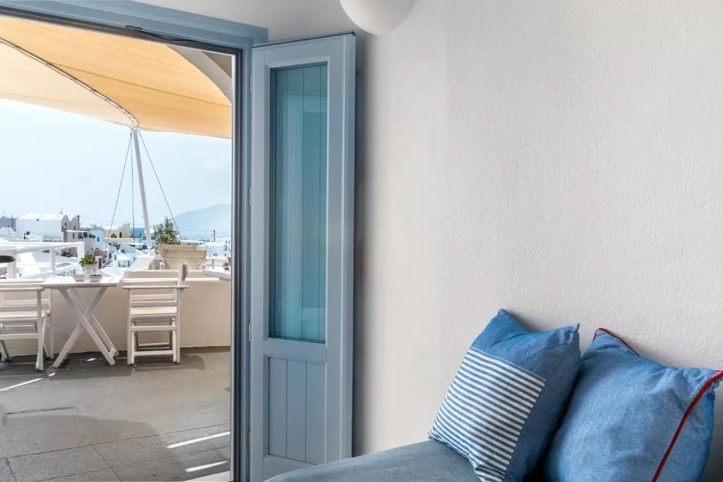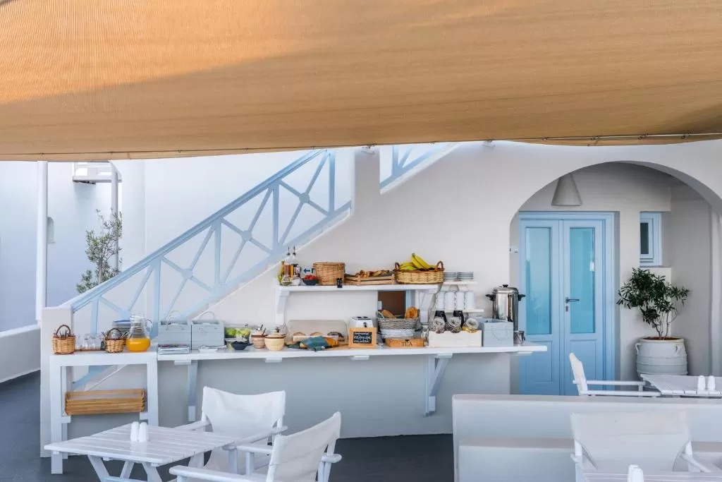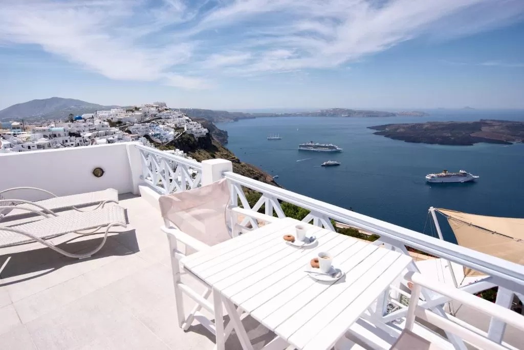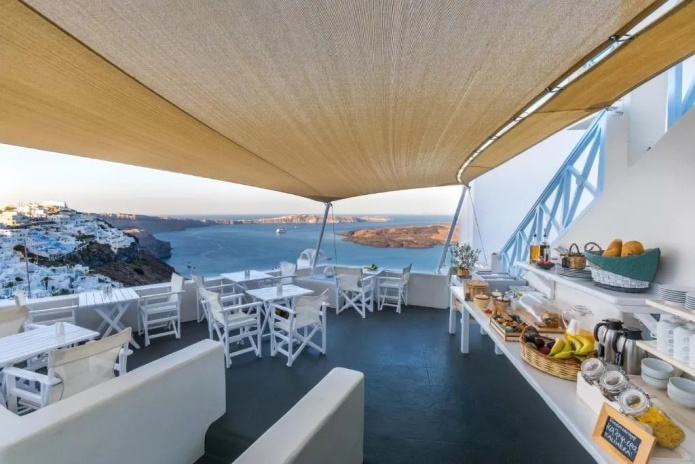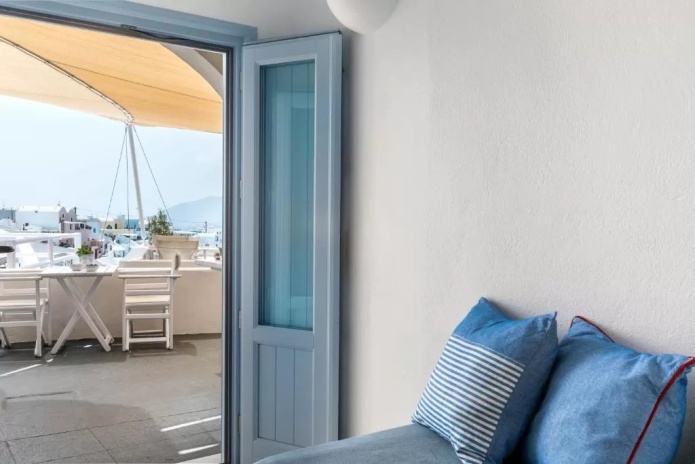 Отель Blue Dolphins Apartments & Suites находится в поселке Фиростефани на обрывистом склоне на высоте 300 метров, откуда открывается вид на вулкан. Из всех номеров с террасой или балконом открывается вид на Эгейское море.