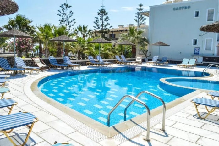 Отель Castro расположен в окружении пышного сада в живописном поселке Камари, в 800 м от одноименного пляжа с черным вулканическим песком. К услугам гостей номера с балконом с видом на сад, бассейн и Эгейское море, терраса для загара, открытый бассейн и барбекю.