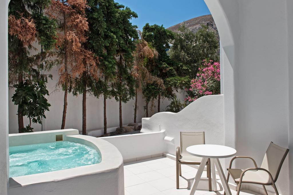 Отель Cavo Bianco, оформленный в кикладском стиле, расположен в поселке Камари. К услугам гостей открытый бассейн, солнечная терраса с шезлонгами и традиционный ресторан. В отеле работает фитнес-зал и спа-центр. В номерах есть балкон или терраса с видом на сад и бассейн. В некоторых номерах установлена гидромассажная ванна.