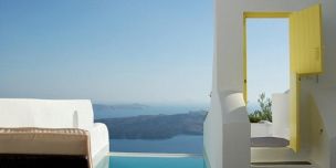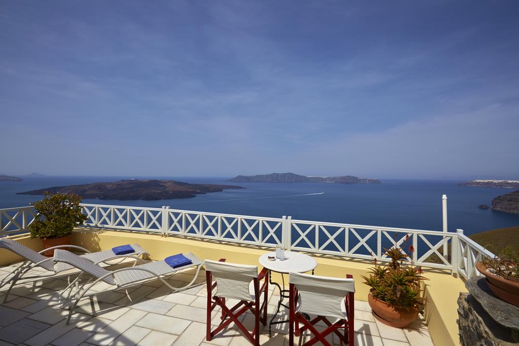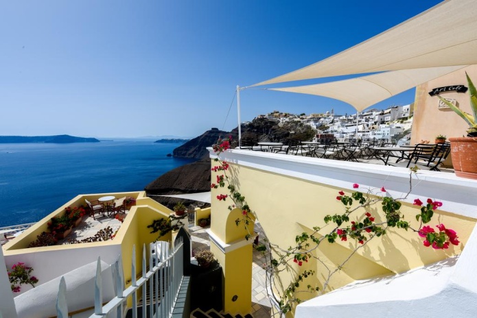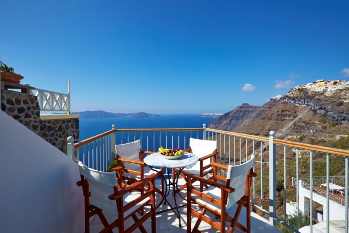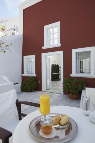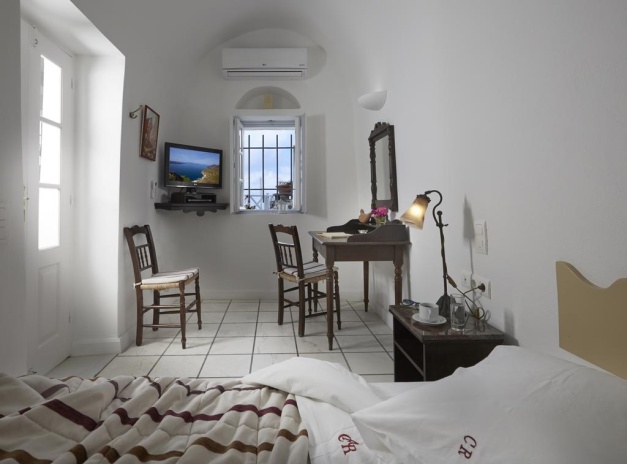 Апарт-отель Cori Rigas Suites расположен на утесах в городе Фира. Здание отеля было построено в 1890 годы, и было отреставрировано с использованием местных вулканических материалов, дерева и мрамора. Сейчас это образец местной архитектуры. К услугам гостей открытый бассейн и меблированная терраса для загара, с которой открывается вид на вулкан Санторини и Эгейское море. В некоторых сьютах установлена гидромассажная ванна на открытом воздухе.