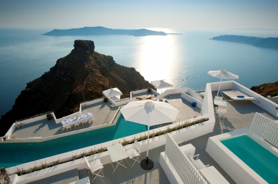 Сьюпериор сюиты предалагают гостям просторные террасы с подогреваемыми джакузи, комфортабельными крестами и двухместными лежаками. Интерьер гостиной отличается мягкостью и воздушностью. Сюит “Кальдера” расположен на самом верхнем уровне, откуда открывается захватывающий вид. Расположенный на среднем уровне отеля сюит “Скарос” предлагает гостям насладиться потрясающими видами на Эгейское море и эффектную скалу Скарос (площадь внутри – 46 кв. м, снаружи – 37 кв. м).