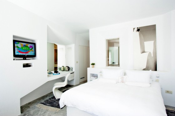 Стандартные номера (Deluxe rooms) имеют кровати размера king size, туалетные столики и встроенные диваны. Единственный номер с балконом позволит гостям насладиться потрясающими видами на море сверху (площадь внутри – 32 кв. м, снаружи – 13 кв. м).
