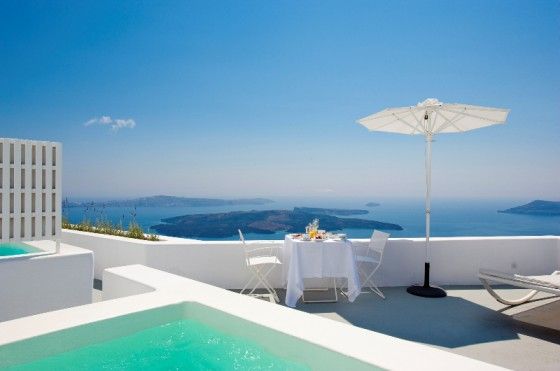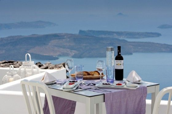 Все номера и сюиты имеют потрясающие 180-градусные виды на Кальдеру и знаменитый закат над Санторини.