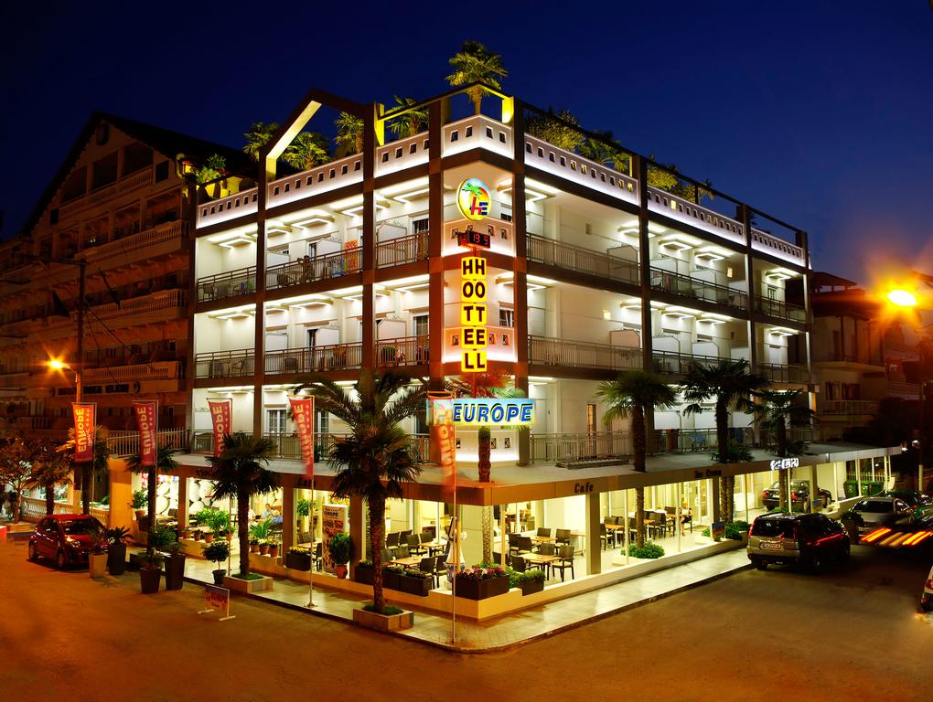 Отель Europe расположен в курортном поселке Паралия Катерини. Ночные клубы, рестораны, бары и магазины находятся в 10 минут ходьбы. Расстояние до аэропорта «Македония» города Салоники составляет 85 км.