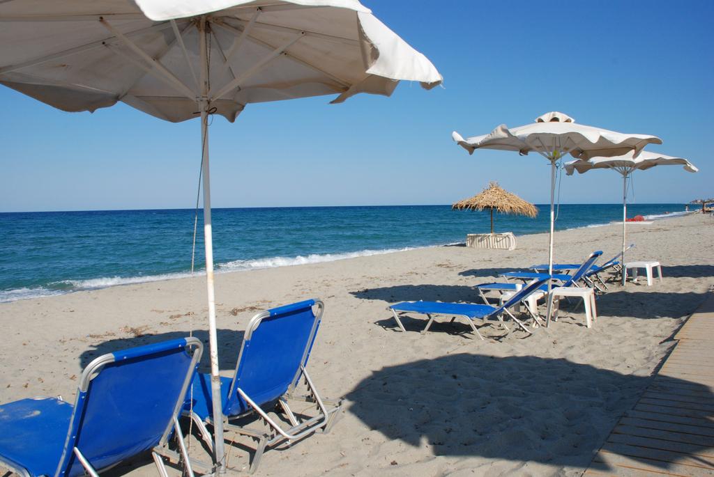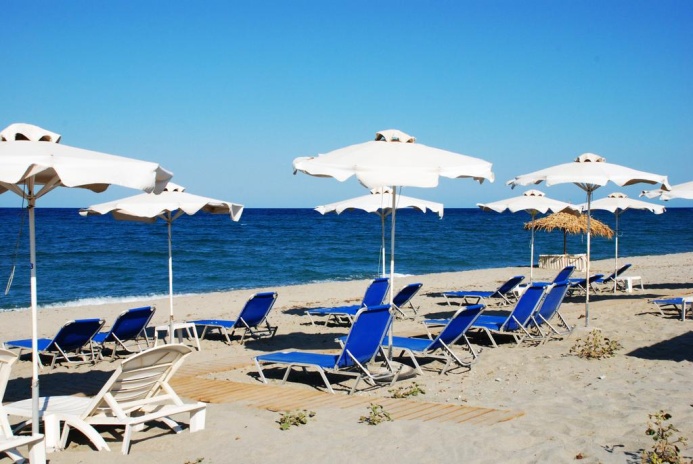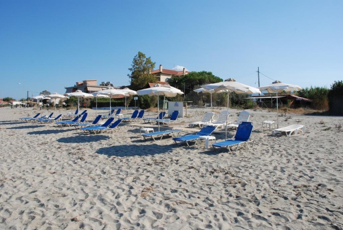песчаный пляж в 200 м от отеля (лежаки и зонтики — бесплатно)