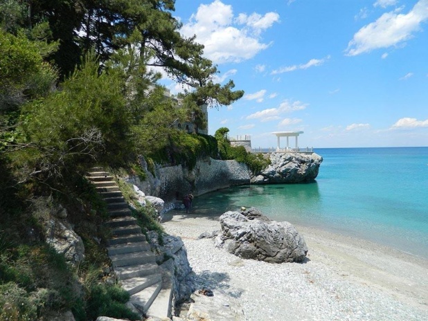 галечный пляж в 100 м