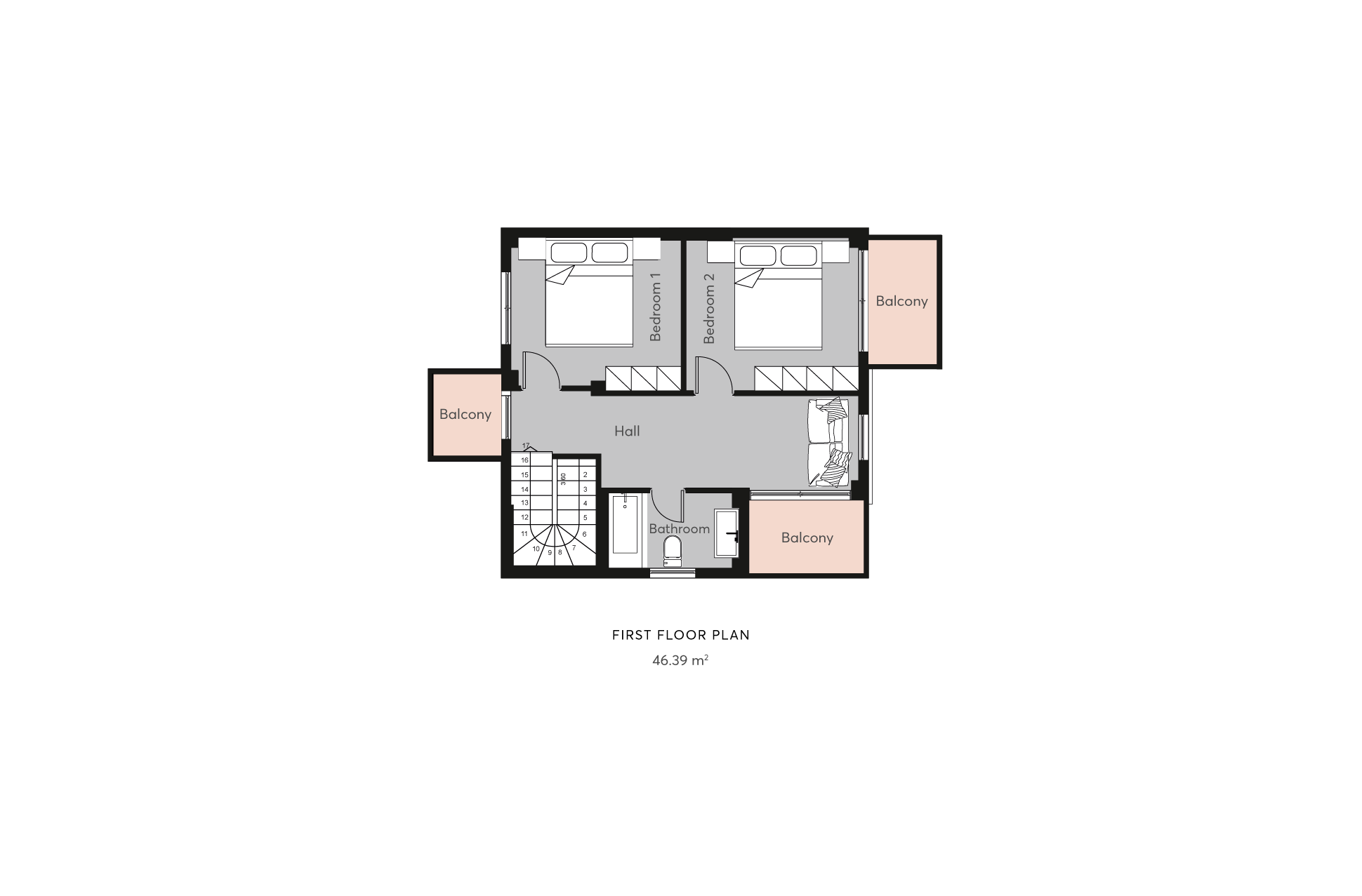 В комлексе 8 вилл с 2 или 4 спальнями: