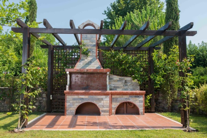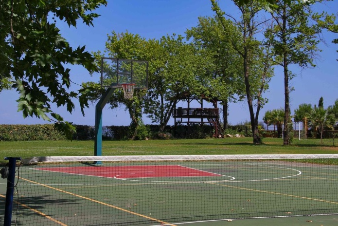 бассейн с лежаками и зонтами, беседка с обеденным столом, сад, барбекю, частная автостоянка на 2 автомобиля, своя спортивная площадка для игры в баскетбол, теннис и футбол
