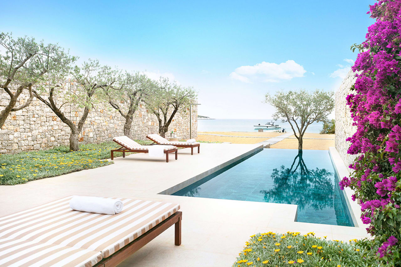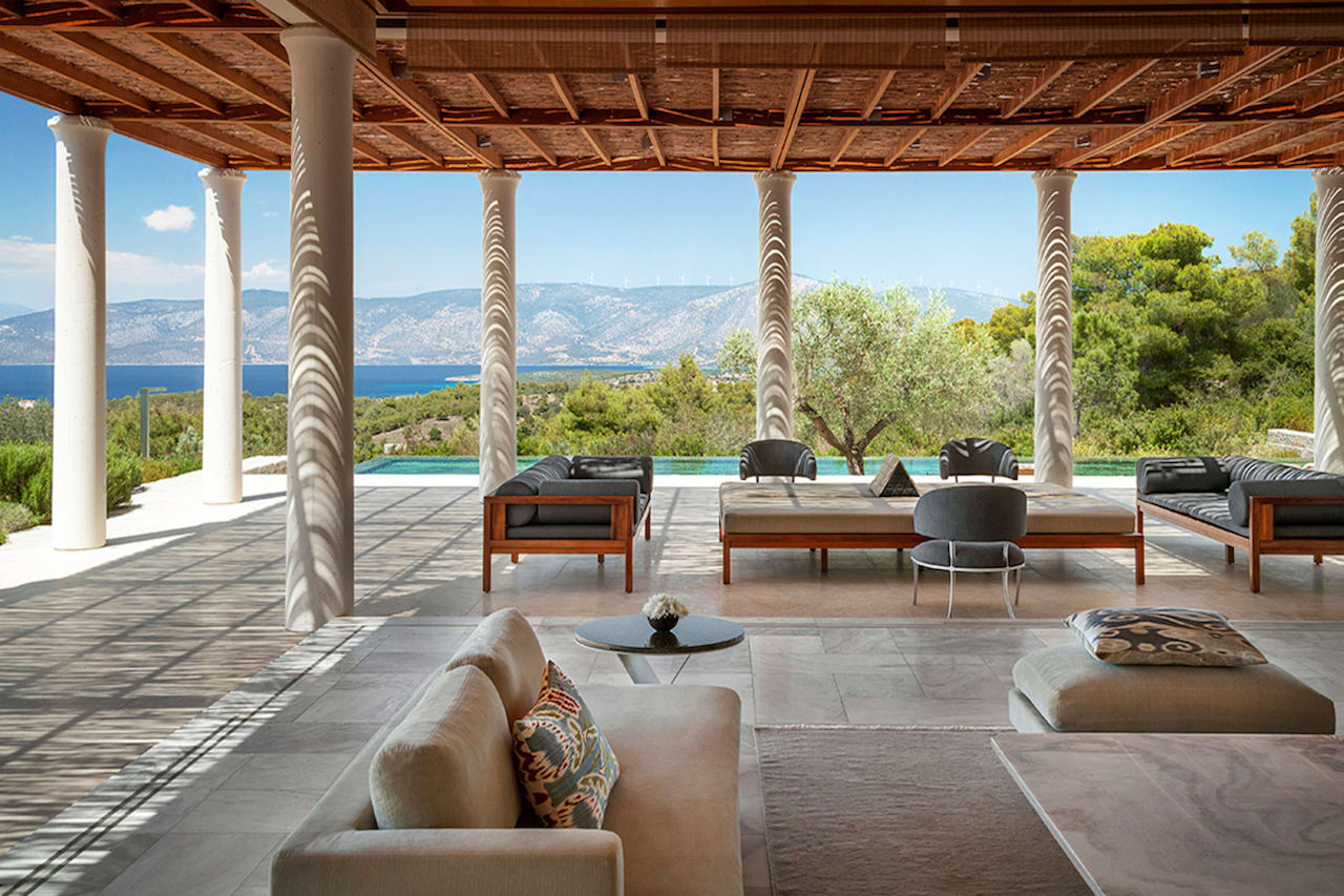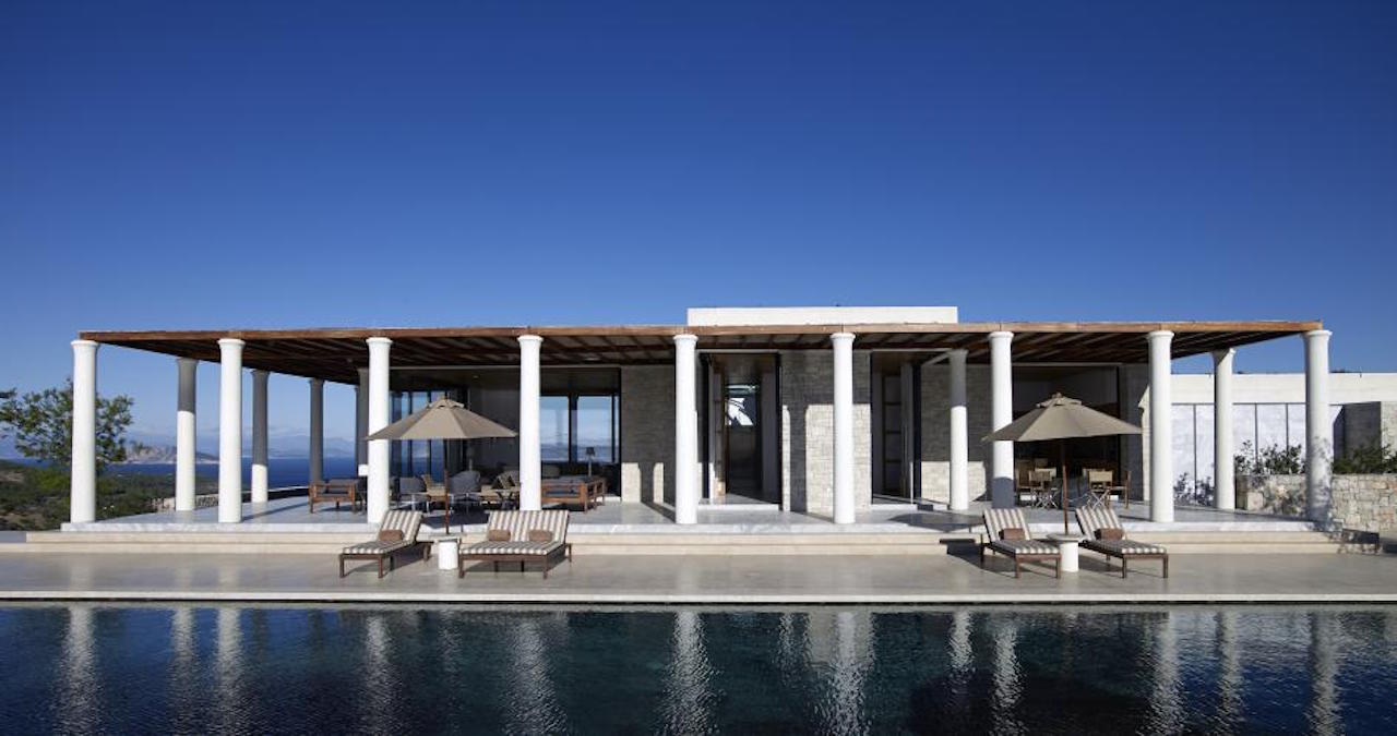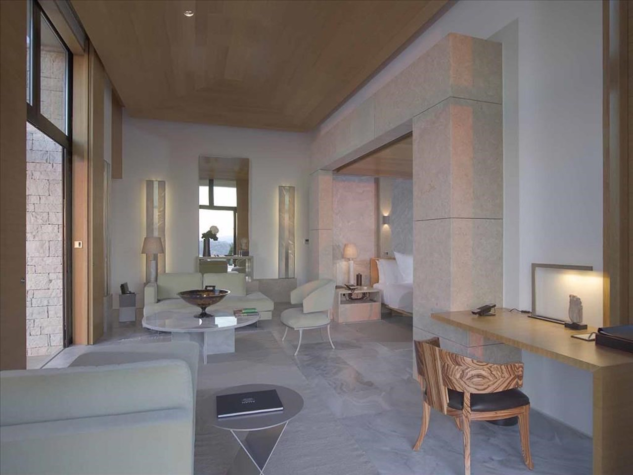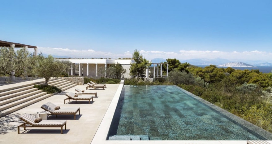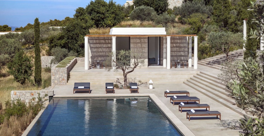 Отель Amanzoe Resort расположен на холме рядом с древним городом Порто Хели. Из отеля открывается панорамный вид на побережье Пелопоннеса и остров Спетсес. В дизайне номеров и вилл использованы мрамор, камень и дерево. К услугам гостей открытый бассейн, спа-центр, фитнес-зал и ресторан.