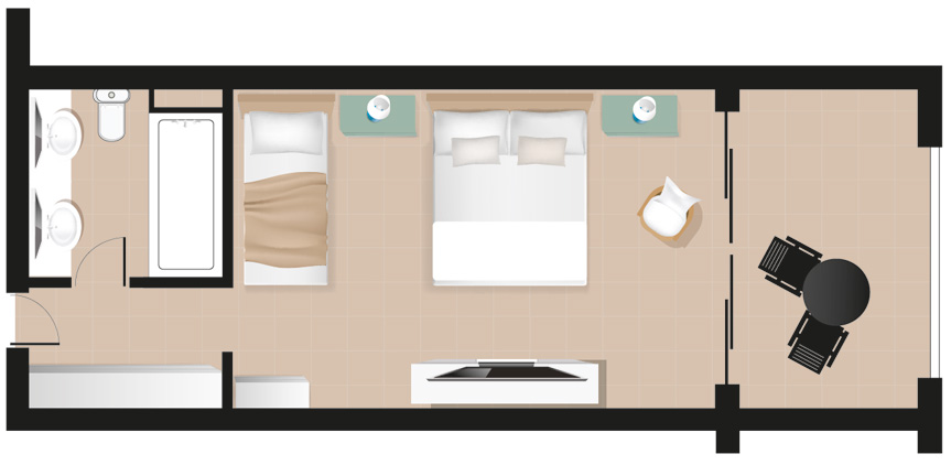 В каждом номере: Wi-Fi, мини-бар, сейф, телефон, кондиционер, фен, банные принадлежности принадлежности, телевизор со спутниковыми каналами, сейф.