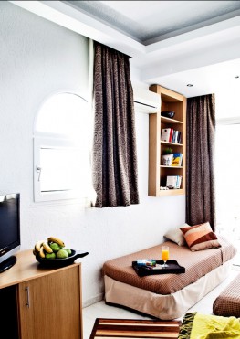 Количество номеров – 43 Типы номеров: Standard Room – 17 кв м (2-3 чел) Во всех номерах есть ванные комнаты в современном стиле с потолком из гранита с ванной с гидромассажем, фен, кнопка вызова безопасности в ванной, спутниковое телевидение, холодильник, сейф, доступ в Интернет, телефон с прямым набором, мраморные полы, балкон / терраса и кондиционер. * 1 двуспальные кровати или 2 двуспальные кровати Junior Suites – 25 кв м Все полулюксы оснащены стильными ванными комнатами с потолком из гранита, джакузи, и отдельными душевыми кабинами, есть фен, кнопка вызова безопасности в ванной, плоский телевизор, спутниковое телевидение, DVD-плеер, мини-бар, сейф, доступ в Интернет, прямая телефонная линия, мраморные полы, балкон / терраса и кондиционер, услуга пробуждения, тапочки и халаты. Полулюксы имеют потрясающий вид на море. * большая двуспальная кровать, 2 диван - кровати Superior Suites – 38 кв м Улучшенный люкс состоит из двух комнат. Все улучшенные апартаменты оснащены стильными ванными комнатами с потолком из гранитного покрытия, джакузи и отдельными душевыми кабинами, есть фен, кнопка вызова безопасности в ванной, плоский телевизор, спутниковое телевидение, DVD-плеер, мини-бар, сейф, доступ в Интернет, прямая телефонная линия, мраморные полы, балкон / терраса и кондиционер, услуга пробуждения, тапочки и халаты. Все улучшенные люксы имеют потрясающий вид на море. *2 двуспальные кровати, 1 дополнительная большая двуспальная кровать, 1 диван-кровать