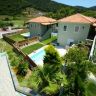 Комплекс состоит из 3х вилл, все с видом на море, где можно разместить от 2 до 6 человек. 1-й уровень: Две спальни с двуспальными кроватями кондиционером, балконом с видом на море. Полностью оборудованная ванная комната со стиральной машиной 2 стирки в неделю бесплатно, больше двух за долнительную плату. А также что косается стирки можно отдавать белье на стирку хозяйвам. 2-й уровень: Современная полностью оборудованная кухня, просторная гостиная с ЖК-телевизором, DVD-плеером и 2 диванами (могут разместиться 2 человека) Большой балкон, WC