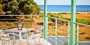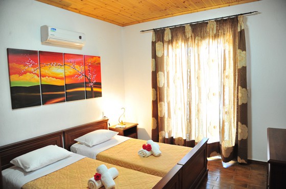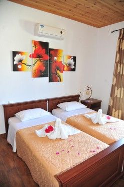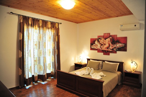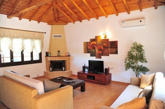 Двухуровневые виллы с камином выходят на балкон с видом на Эгейское море и сад. Располагают кондиционером, 2 спальнями, гостиной зоной со спутниковым телевидением, кухней с плитой и обеденной зоной, а также стиральной машиной. Первый этаж: 1я спальня с двуспальной кроватью и отдельной ванной комнатой. Вторая спальня с двумя односпальными кроватями и собственной ванной комнатой с душем. Прямой доступ к бассейну во дворе. Второй этаж: гостиная комната с камином, столовая, полностью оборудованная кухня (холодильник, плита, тостер, кофеварка, микроволновая печь, посудомоечная машина), ванная комната. В главной спальне ванная,во второй - душ.