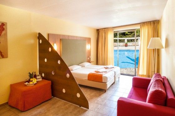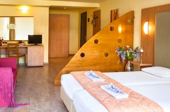 60 номеров DOUBLE ROOM - 25 кв м TRIPLE ROOM - 30 кв м QUADRAPLE ROOM - 45 кв м Все номера имеют потрясающий вид на море. В НОМЕРЕ: 2 односпальные кровати ( по запросу предоставляется двуспальная кровать king – sized) Мебелерованый балкон, ванная комната с туалетными принадлежностями, фен, кондиционер, телефон, мини-бар, сейф, телевизор