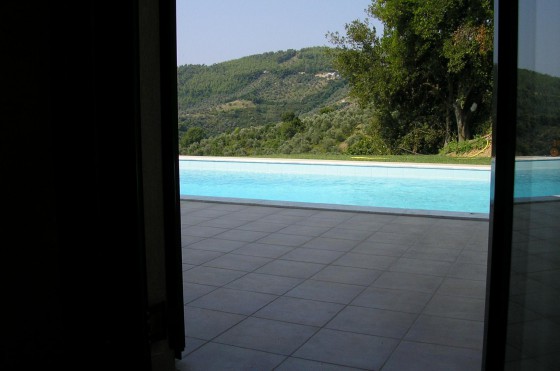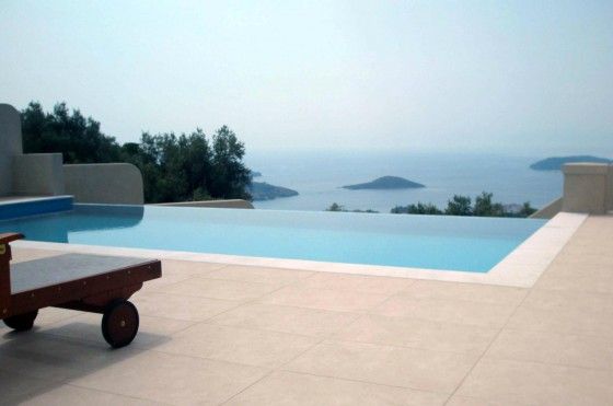 На нижнем этаже есть большая спальня, еще одна спальня с двумя односпальными кроватями и спальня с односпальной кроватью. Во всех спальнях есть ванная комната , терассы с видом на море и бассейн.