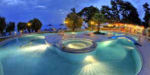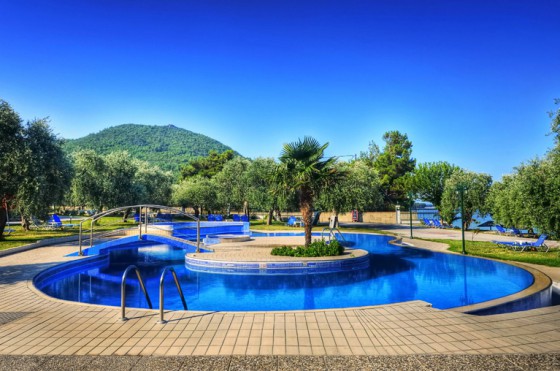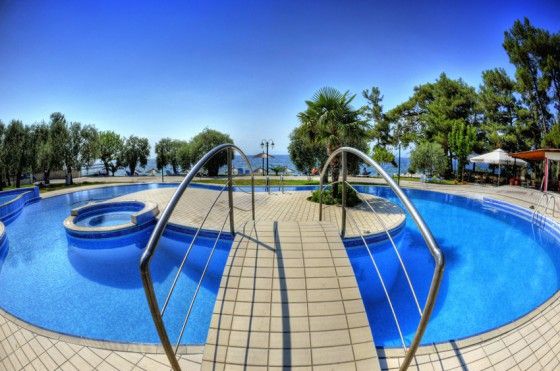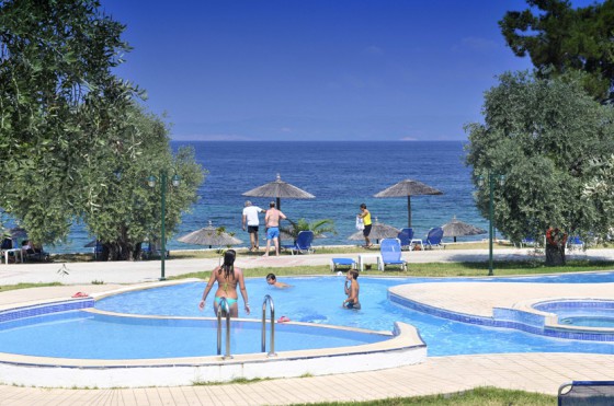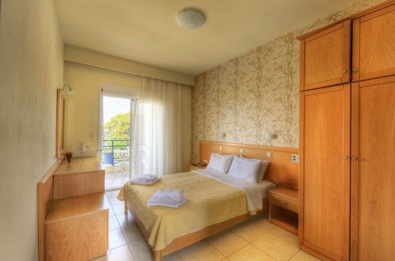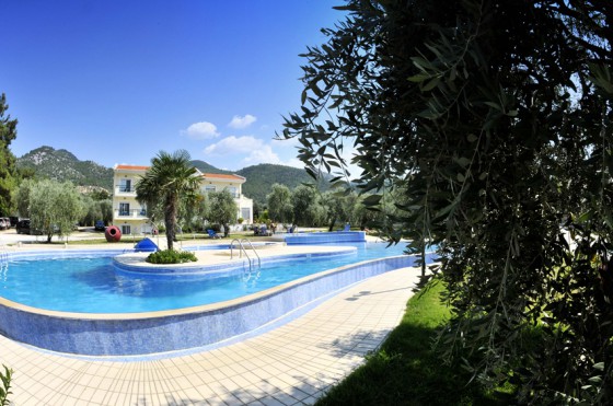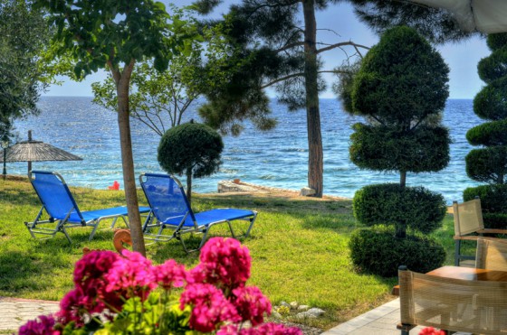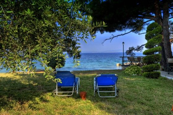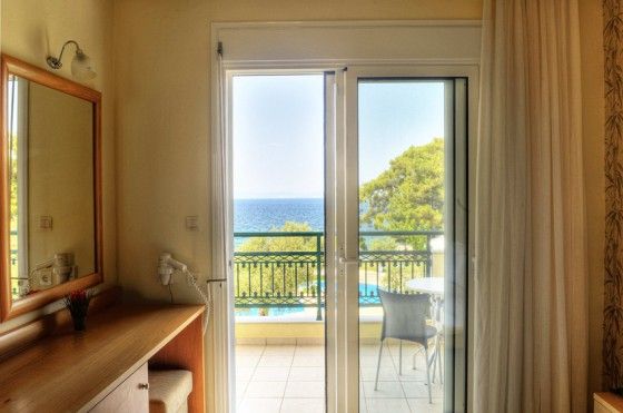 Маленький отель на берегу песчаного пляжа. Уютная территория с садом и красивым бассейном, великолепный вид на море. Просторные апартаменты с оборудованной кухней, бесплатный интернет, таверна у моря.