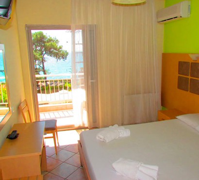 Маленький уютный отель с зеленой территорией. Расположен рядом с популярным песчаным пляжем, окруженным соснами и отмеченным Голубым флагом ЕС. Великолепные виды на море и зеленые склоны. Удобные номера, хороший сервис, интернет, бассейн, тренажерный зал, теннис. Идеально подойдет для экономичного комфортного отдыха. Месторасположение: курортный п. Певкари, в 44 км от порта Лименас, в 28 км от порта Прину.