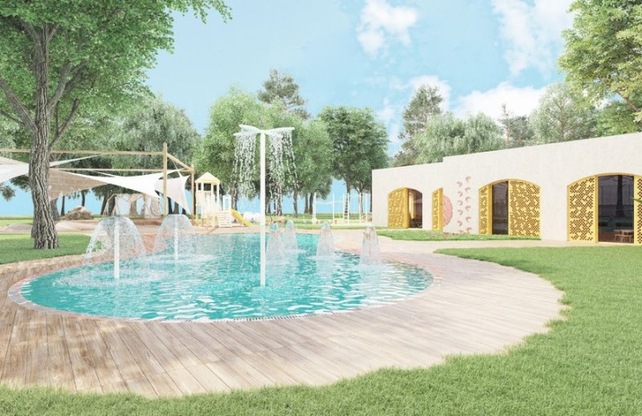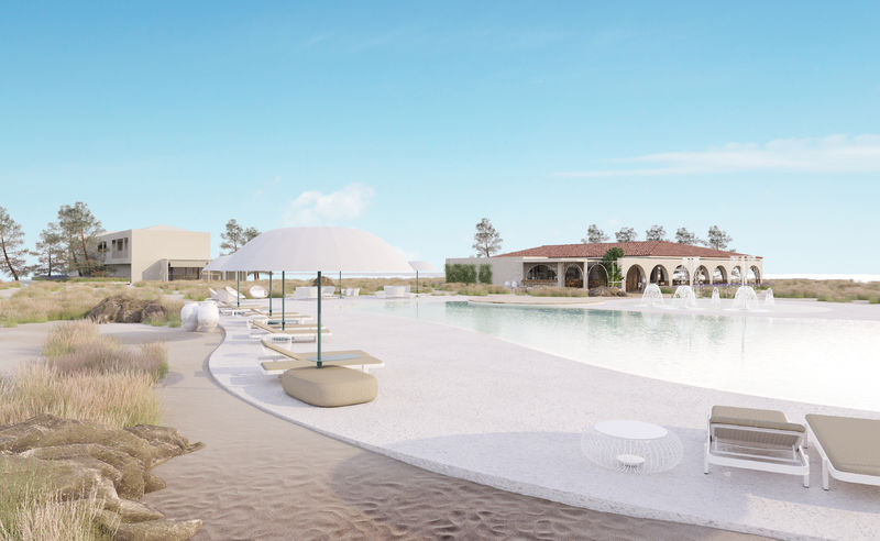 Главный бассейн находится всего в нескольких шагах от пляжа, откуда открывается великолепный вид на море.