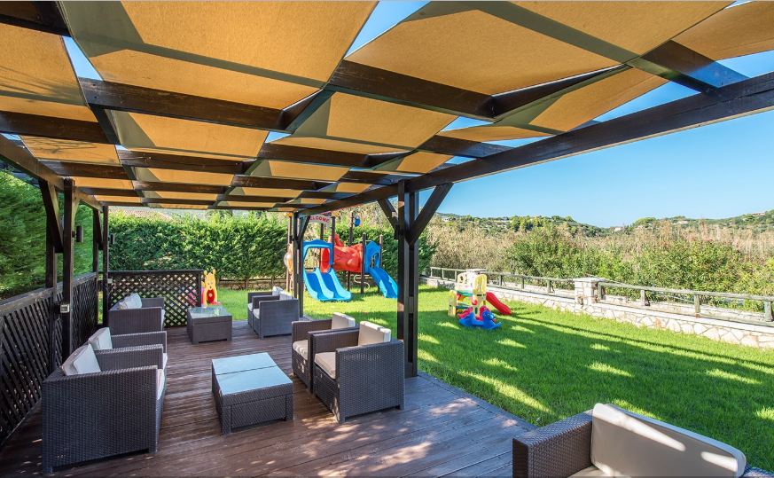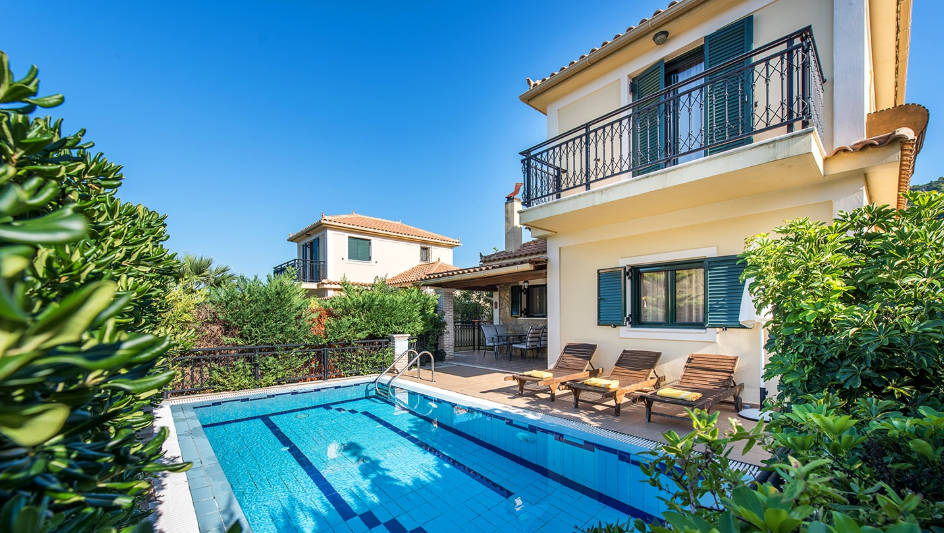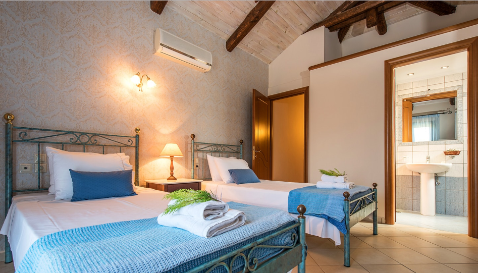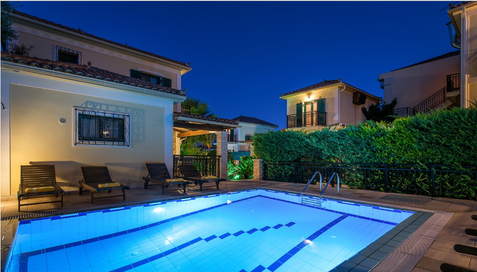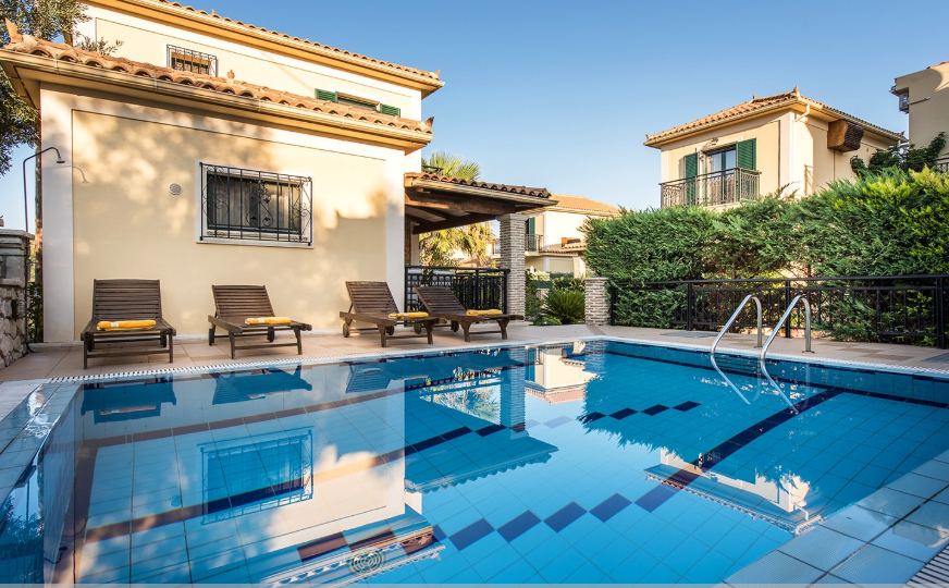 Семейная резиденция с собственным бассейном (до 6-и взрослых) первый этаж состоит из спальни с двухспальной кроватью, гостиной-кухней, телевизором и ванной. Есть дополнительно диван-кровать. Второй этаж состоит из одной спальни с двумя односпальными кроватями и туалетом. Вилла имеет собственный бассейн.