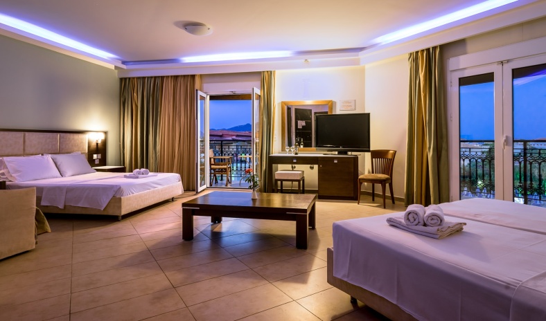 Четырехместный номер (30 кв м): 2 односпальные кровати и 1 двуспальная кровать или 4 односпальные кровати.