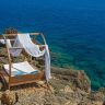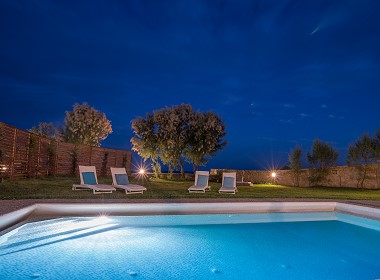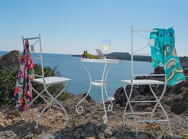 Двор выложен камнем, барбекю, частный бассейн, душ на открытом воздухе, территория украшена цветами, есть прямой доступ к морю. Для комфорта гостей лежаки и зонтики находятся и на пляже и у бассейна. Есть частная парковка.