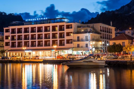 Отель расположен на центральной набережной города Закинф - напротив порта острова. Обновлен в 2011 г.