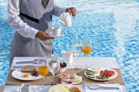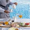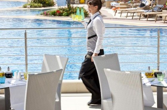 2 ресторана: центральный и у бассейна. Dress Code – вечером для мужчин длинные брюки, лаунж-бар, бар у бассейна.