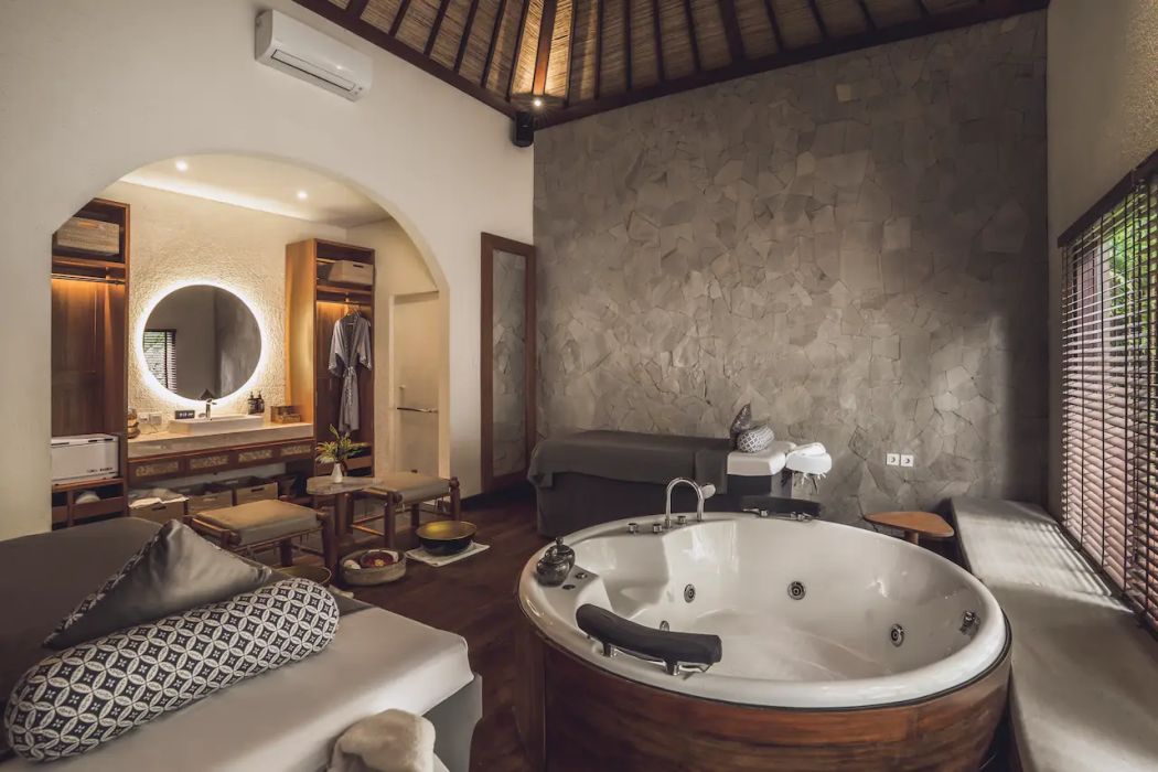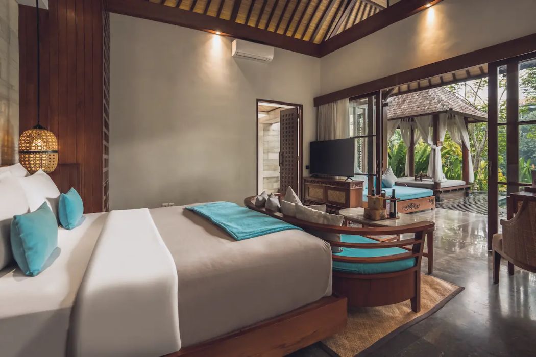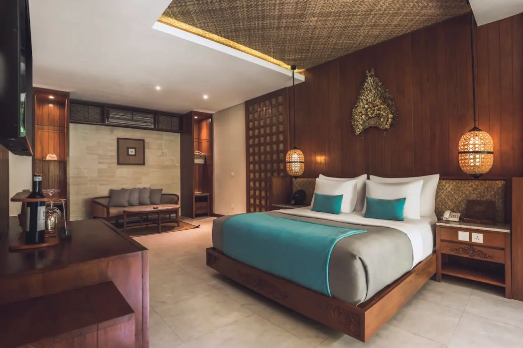 Номера и виллы оформлены в современном балийском стиле, многие оснащены приватными бассейнами или джакузи, что делает отель идеальным для романтического отдыха.