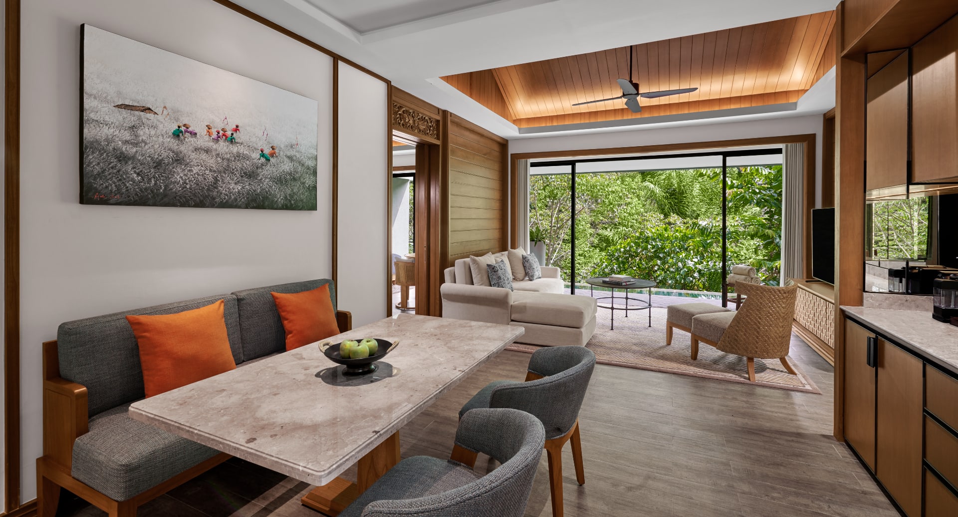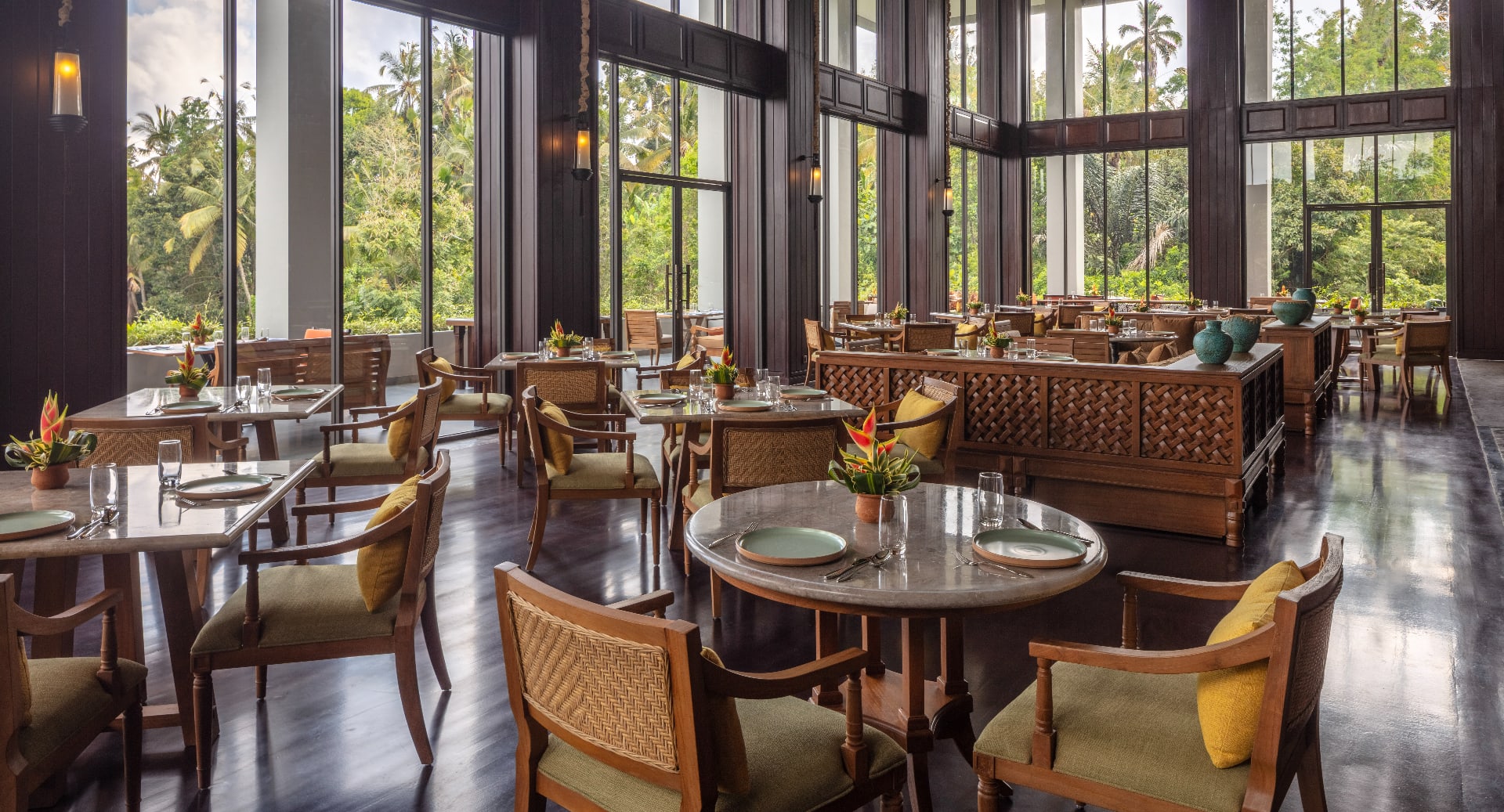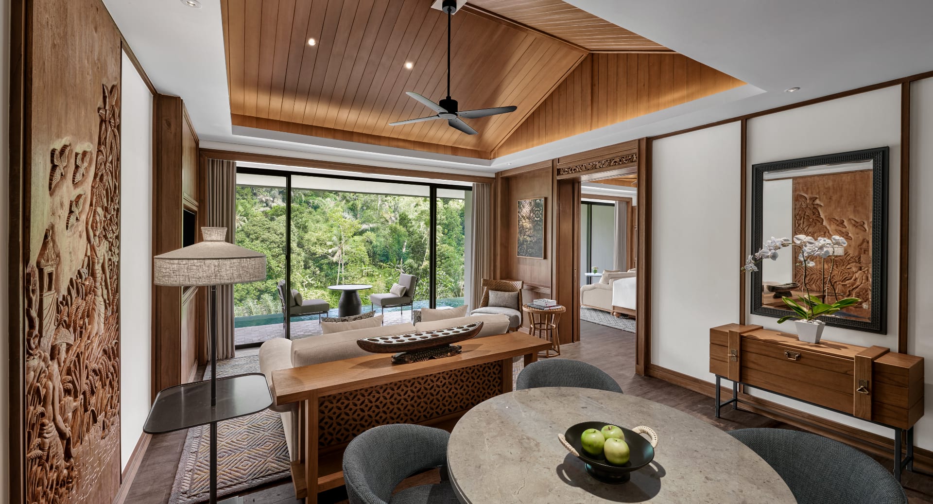 Номера оформлены в современном стиле с балийскими акцентами и имеют просторные планировки. Некоторые из них оснащены бассейнами, расположенными на высоте, с видами на тропический лес.
