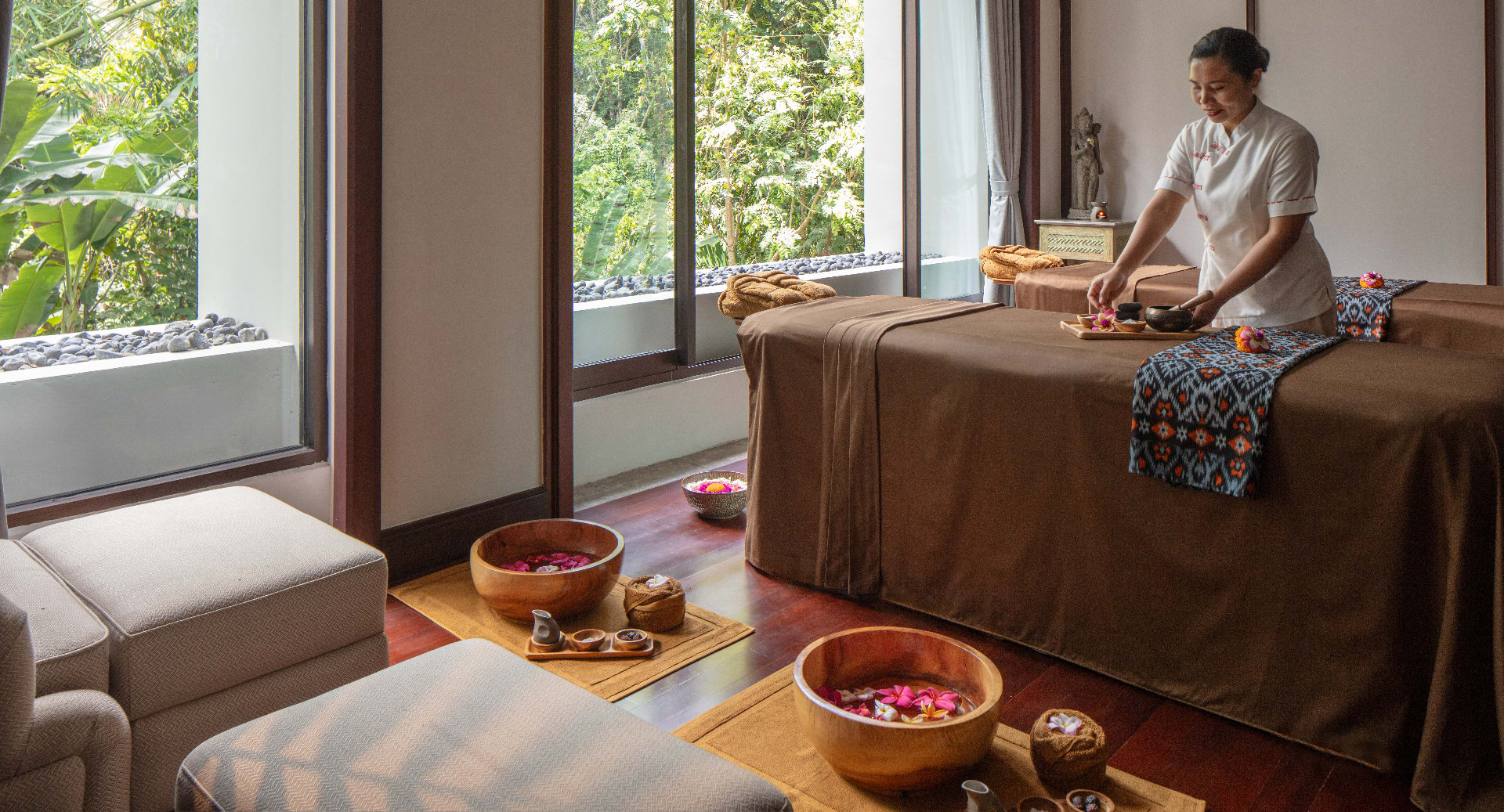 Доступны уникальные гастрономические программы, включая участие в кулинарной школе, где можно узнать о традиционных индонезийских рецептах. Anantara Spa предлагает широкий выбор процедур, включая традиционные балийские массажи и альтернативные методы восстановления. Организуются экскурсии по окрестностям, такие как посещение местных деревень и рисовых террас.