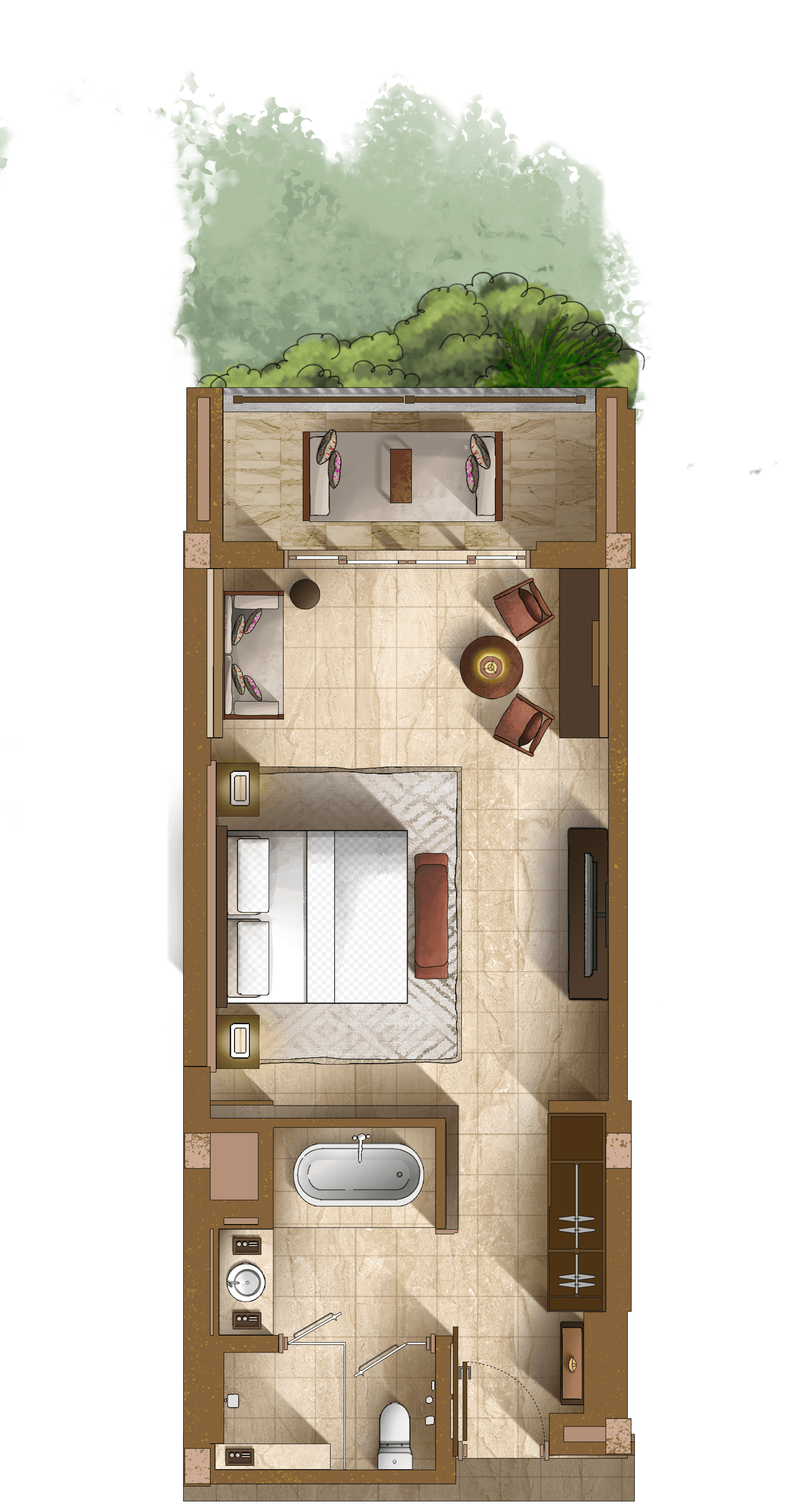 В номерах: Wi-Fi, кондиционер, шкаф, мини-бар, письменный стол, телевизор, сейф, банные принадлежности, набор для приготовления чая и кофе, комплект ароматических горелок, электрический чайник.
