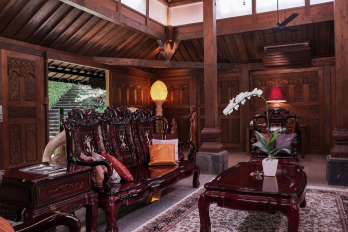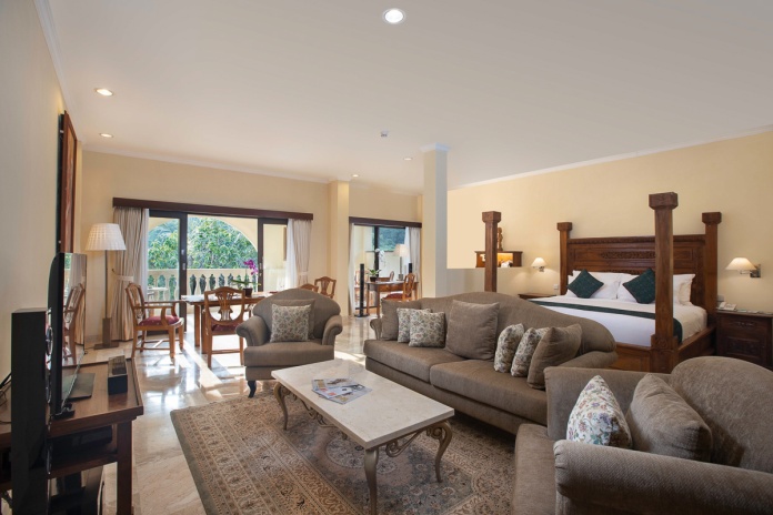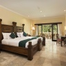 Номера оформлены в балийском стиле, оснащены современными удобствами и имеют балконы с видом на сад или долину. К услугам гостей открытый бассейн, окруженный пышной зеленью, бесплатные занятия йогой, спа-салон, , предлагающий процедуры по уходу за лицом и телом, а также массажи, тренажёрный зал, кулинарные мастер-классы и прогулки по рисовым полям.