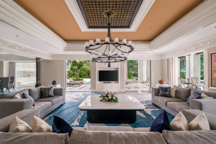 Двухэтажная вилла, 2 спальни, двуспальная кровать king-size с просторной гостиной зоной с диваном, креслами, письменный столом и обеденным столом на 8 человек, вторая спальня с 2 односпальными кроватями, гардеробная, отдельная гостиная и обеденная комната, ванная комната с ванной и душем, гостевой туалет, терраса, персональный открытый бассейн и джакузи, частный лифт, вид на сад, доступ в лаунж-клуб Premium, небольшая кухня, приватная подъездная дорога;