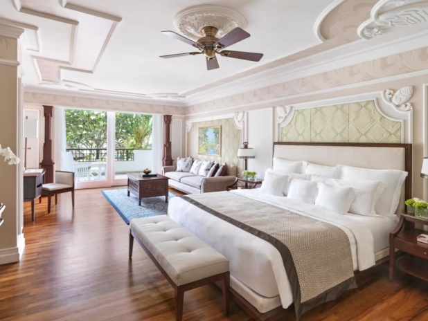 Спальня с двуспальной кроватью king-size или 2 односпальными кроватями, отдельная гостиная комната с диваном и обеденным столом, гардеробная, ванная комната с роскошной ванной-джакузи, отдельной душевой кабиной, балкон, вид на сад и побережье, эксклюзивный доступ в клубный лаунж InterContinental и клубный бассейн, кофемашина для приготовления эспрессо, выбор специализированных чаев TWG, при размещении 2+2 до 4-х лет: ребёнок на кровати с родителями и на диване-софа;