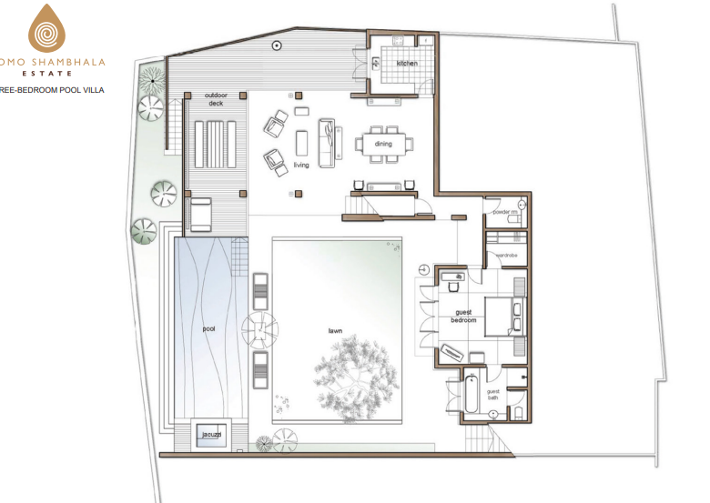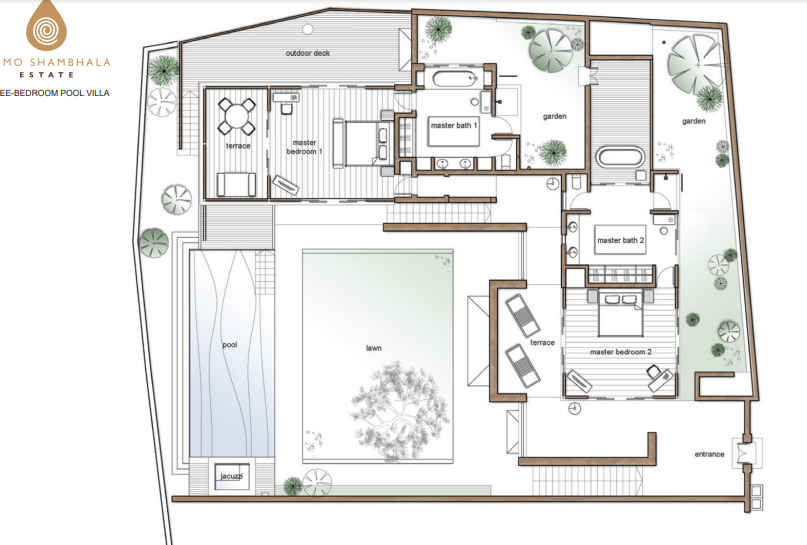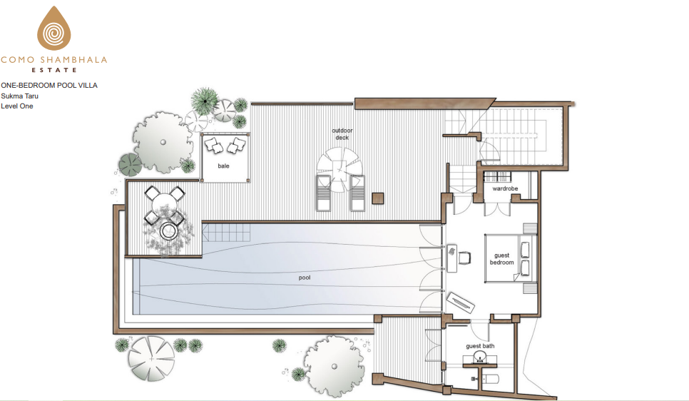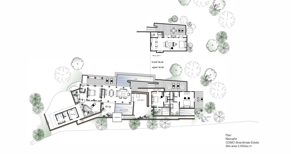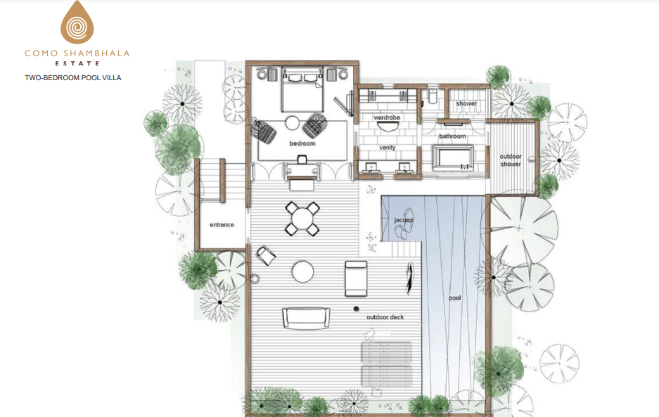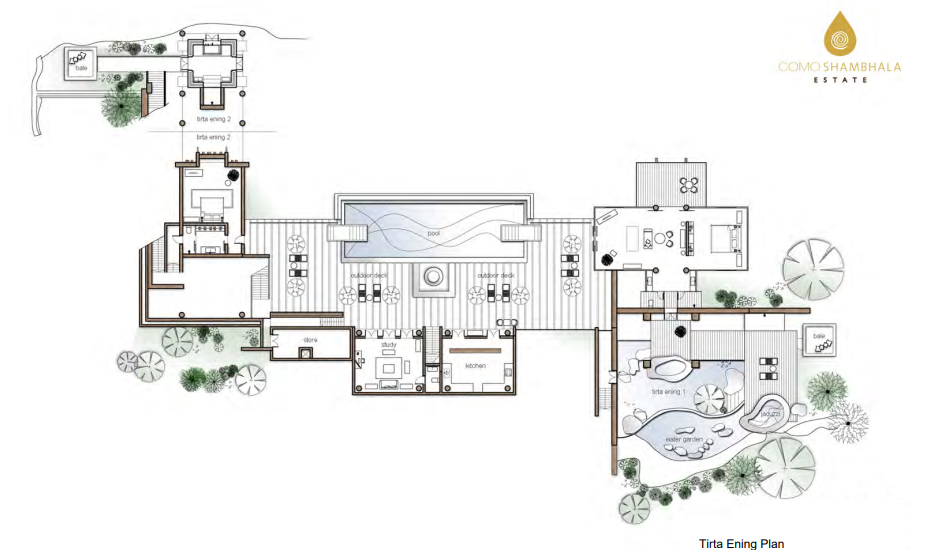 Como Shambala Estate находится в тихом и уединенном месте, располагающем к медитации и расслаблению. Все номера расположены в резиденциях или небольших уединенных виллах — каждую можно снять целиком.