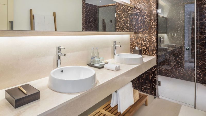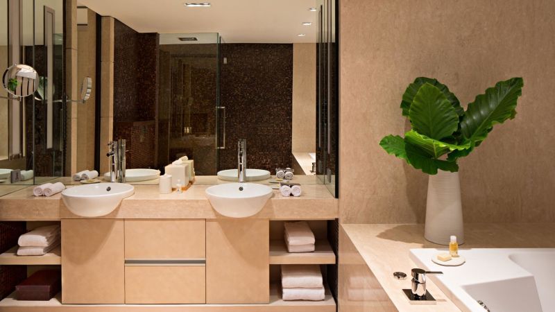 В номерах: мини-бар, набор для приготовления чая/кофе, телевизор (IPTV), Wi-Fi, банные принадлежности, мат для йоги, сейф, кофемашина Nespresso, кондиционер, халат и тапочки, фрукты и вода в номере.