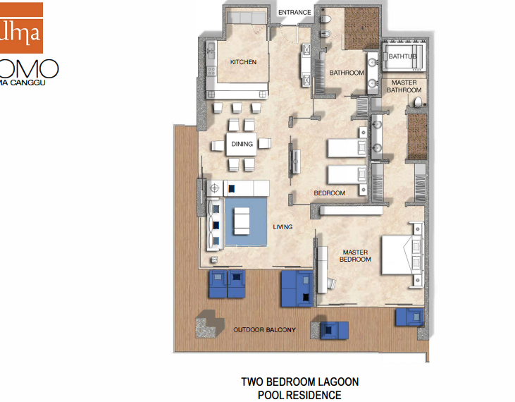 - 10 номеров 1 Bedroom Residence Lagoon Pool (95 м², макс. 3 чел.).