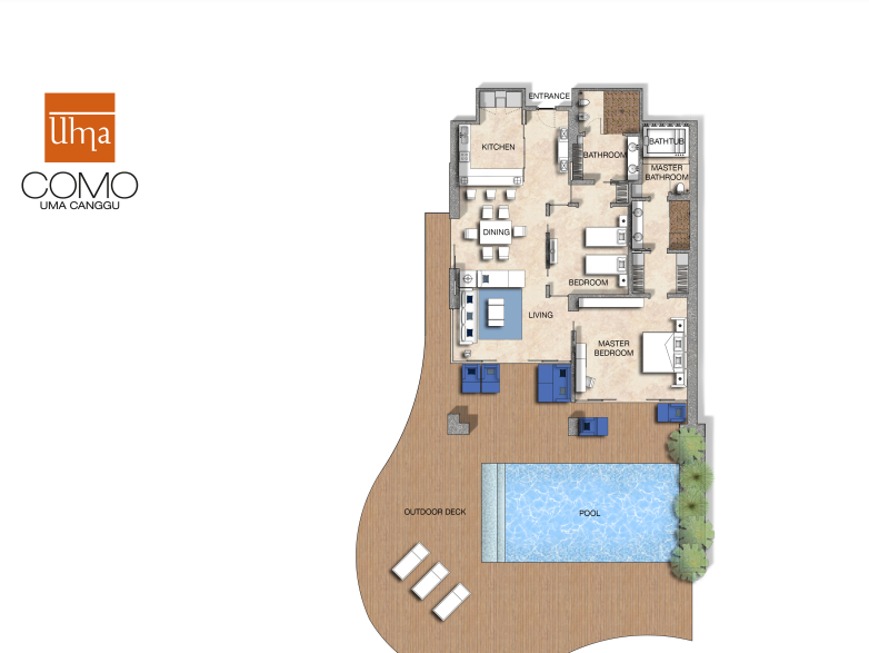- 4 номера Uma Pool Residence (290 м², макс. 5 чел.).