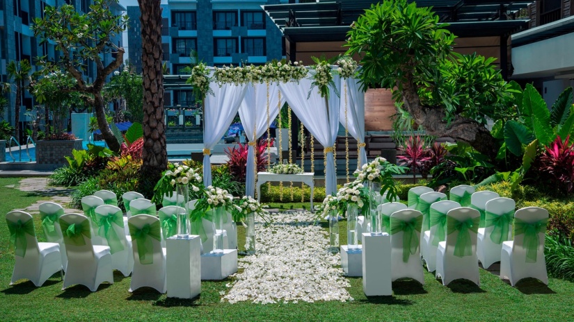 Принадлежит к сети Marriott (Courtyard by Marriott Bali Nusa Dua).