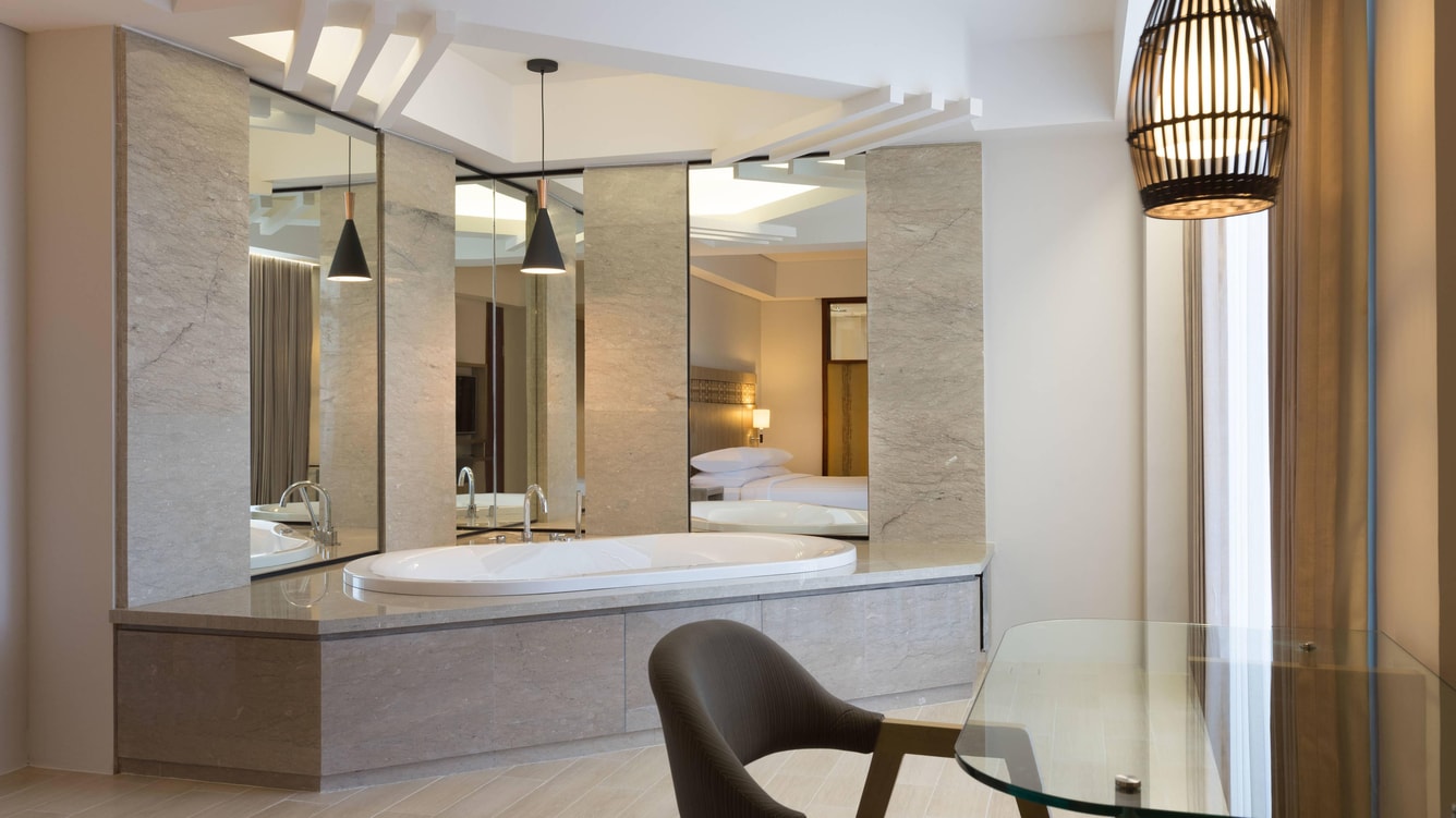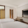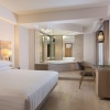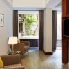 В номерах: письменный стол, мини-холодильника, набор для приготовления чая/кофе, фен, сейф, телевизор, Wi-Fi, халат, тапочки, бутилированная питьевая вода, телефон, кондиционер, банные принадлежности.