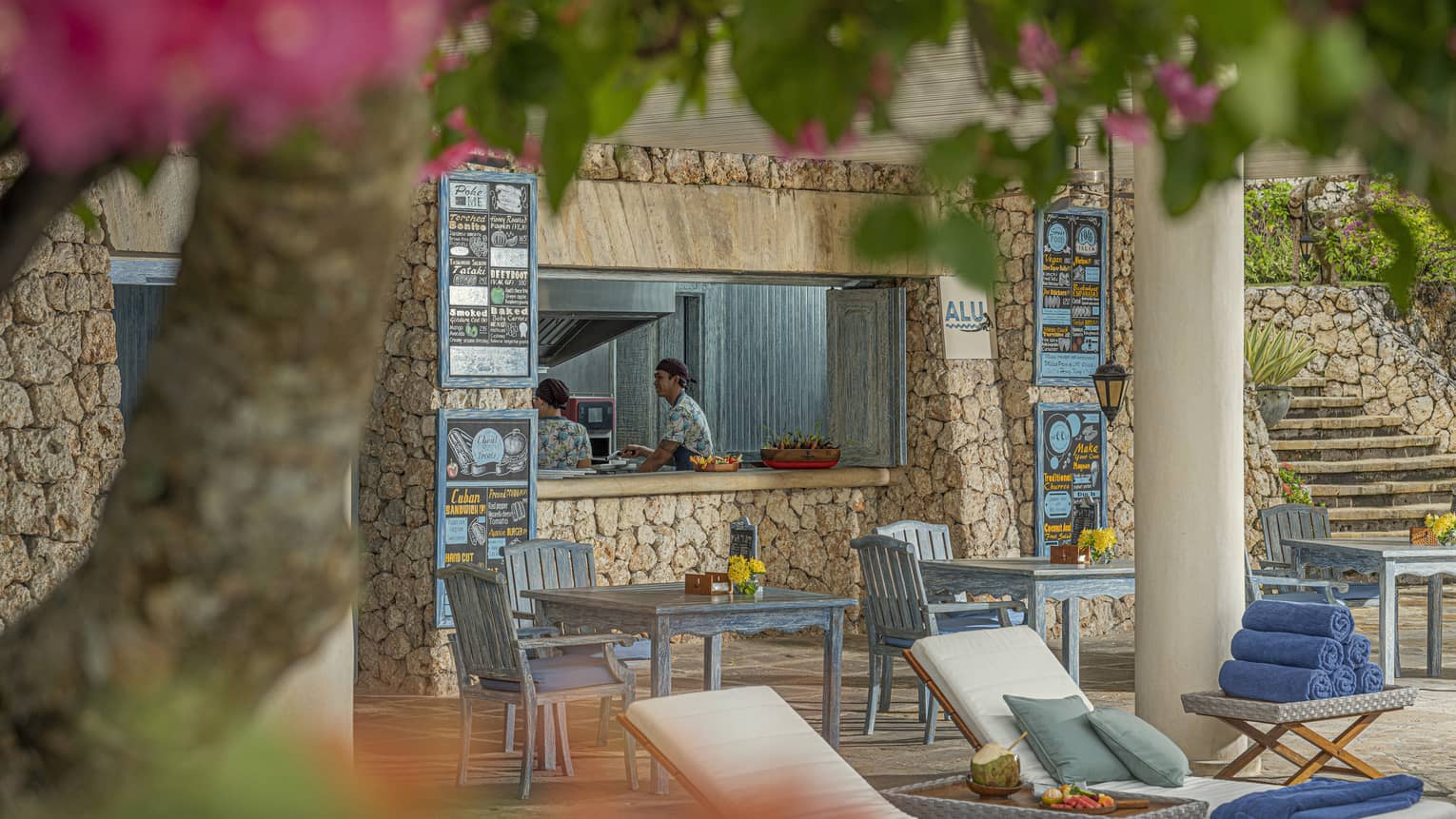 Расположена на склоне холма среди садов, 2 спальни: двуспальная кровать king-size и 2 односпальные кровати, возможно по 1 дополнительной кровати в каждой спальне, 2 ванные комнаты с ванной и душем, 2 душа под открытым небом, отдельная гостиная комната с диваном и обеденным столом, кухня, меблированная терраса, небольшой частный бассейн, частичный вид на океан и сад, план номера;