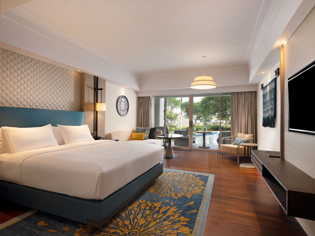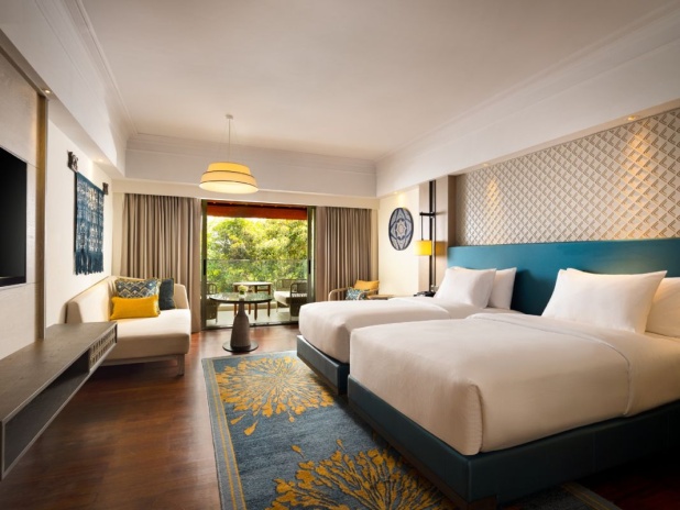- 86 номеров Deluxe Garden View (48 м², макс. 3 или 2+2).