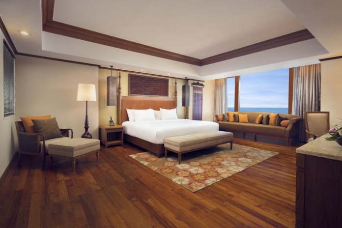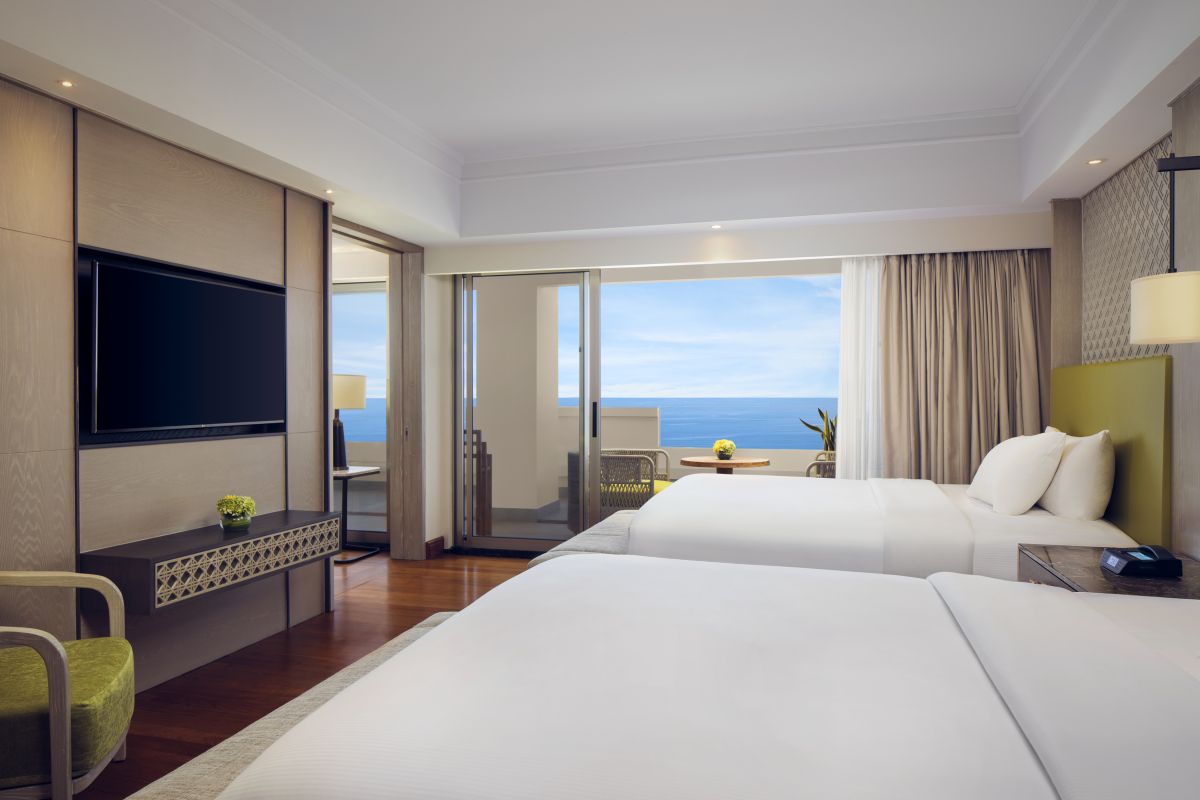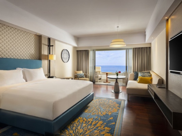 - 92 номера Deluxe Ocean View (48 м², макс. 3 или 2+2).