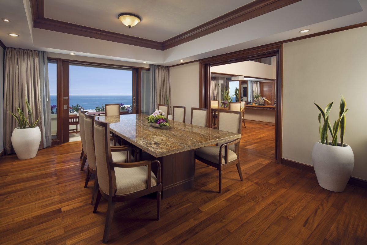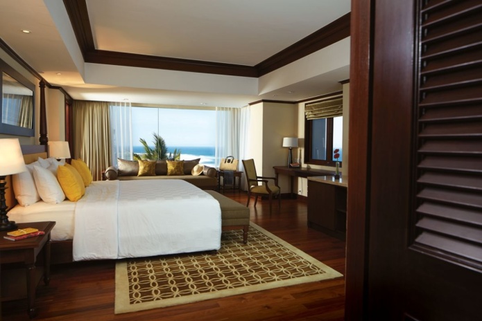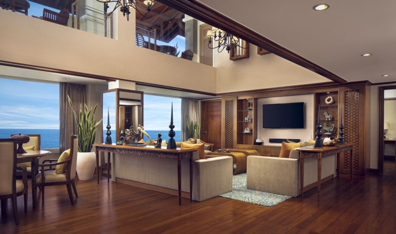 Расположен Cliff Tower, двухуровневый номер, 2 спальни: двуспальная кровать king-size и 2 односпальные кровати, отдельная гостиная комната с диваном, с мини-кухней и обеденной зоной, балкон, вид на океан, доступ в эксклюзивный лаунж-клуб Executive;