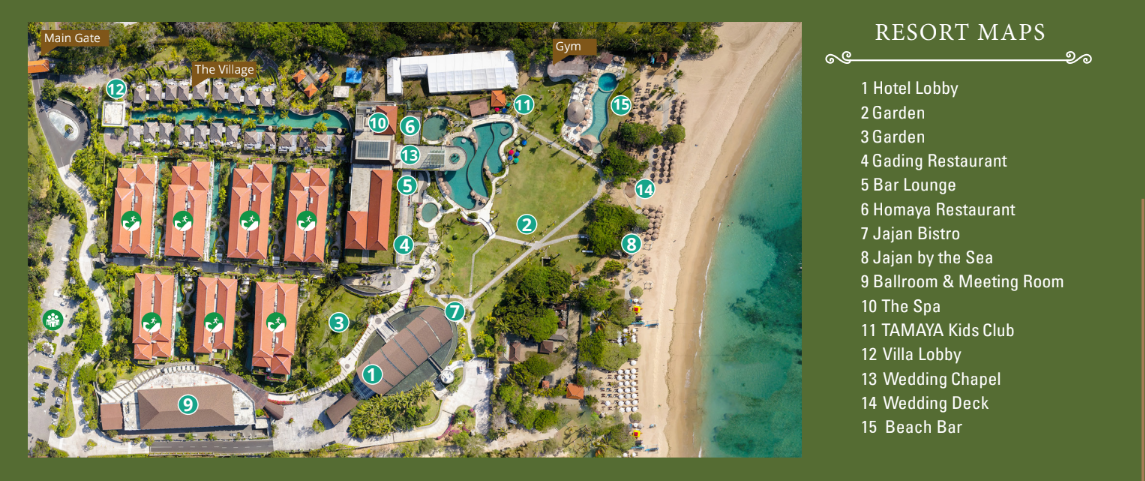 Merusaka Nusa Dua располагает 455 великолепными номерами категории deluxe, сьютами и виллами, которые отражают яркую культуру Бали. Отель состоит из 8-ми четырёхэтажных корпусов и комплекса вилл. К услугам гостей открытый бассейн, спа-центр, детский клуб и частный пляж.