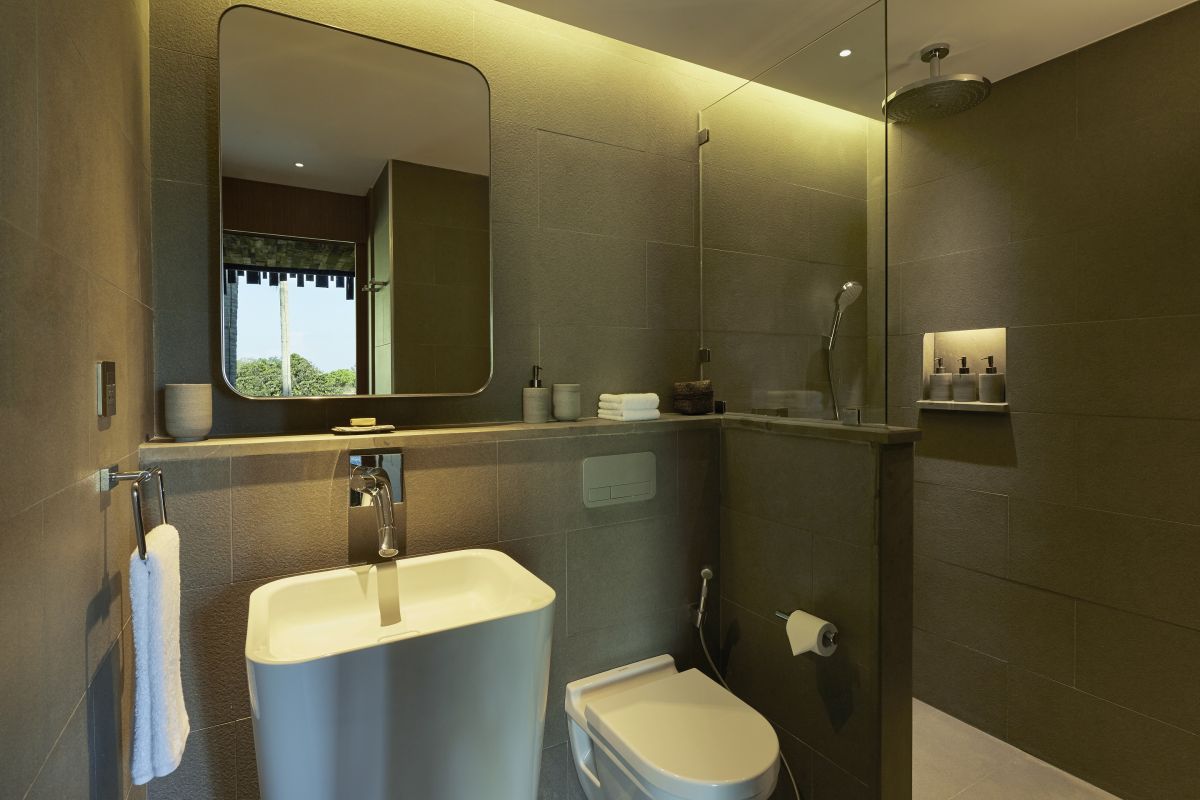 Архитектура курорта отражает гармоничное сочетание современного дизайна и традиционных балийских влияний. Использование переработанной древесины, натуральных камней со всего архипелага и традиционной балийской кровли (серап) обеспечивает органичное слияние Nirjhara с окружающей средой.