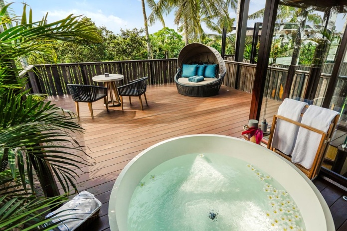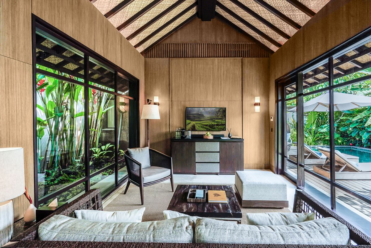 Современные интерьеры пропитаны балийским влиянием и предлагают изготовленную на заказ мебель ручной работы, изысканные ткани и оригинальные произведения искусства