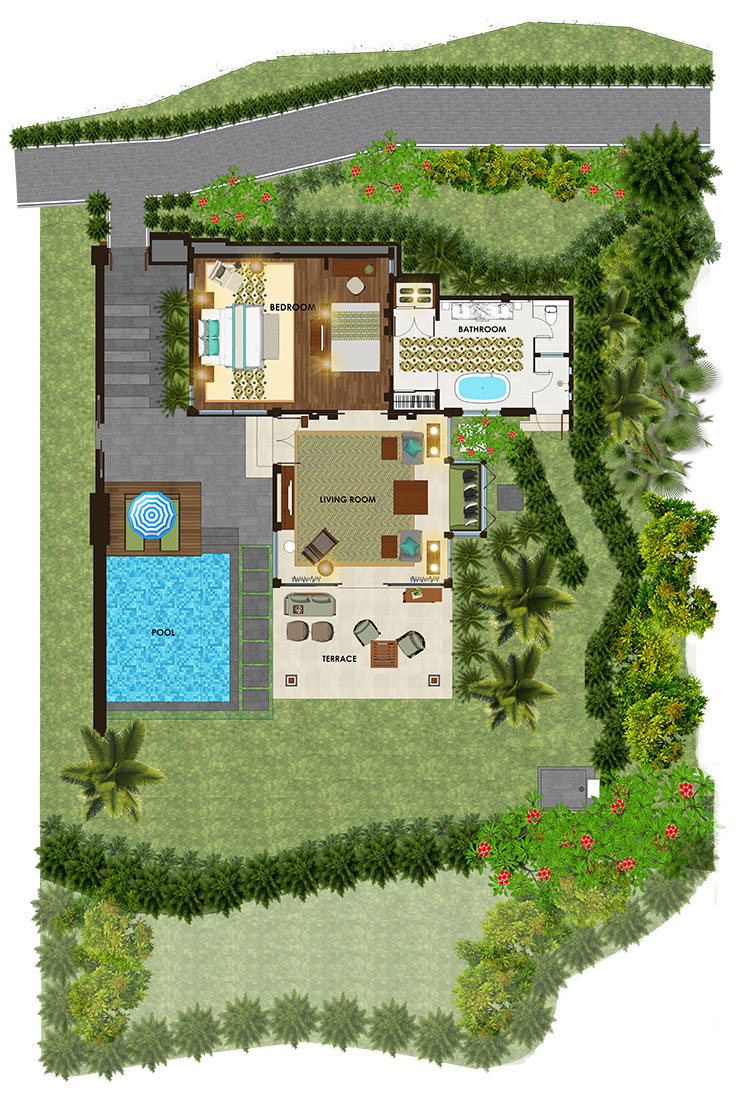 - 1 Bedroom Garden Pool Villa (375 - 400 м², макс. 3 или 2+2).
