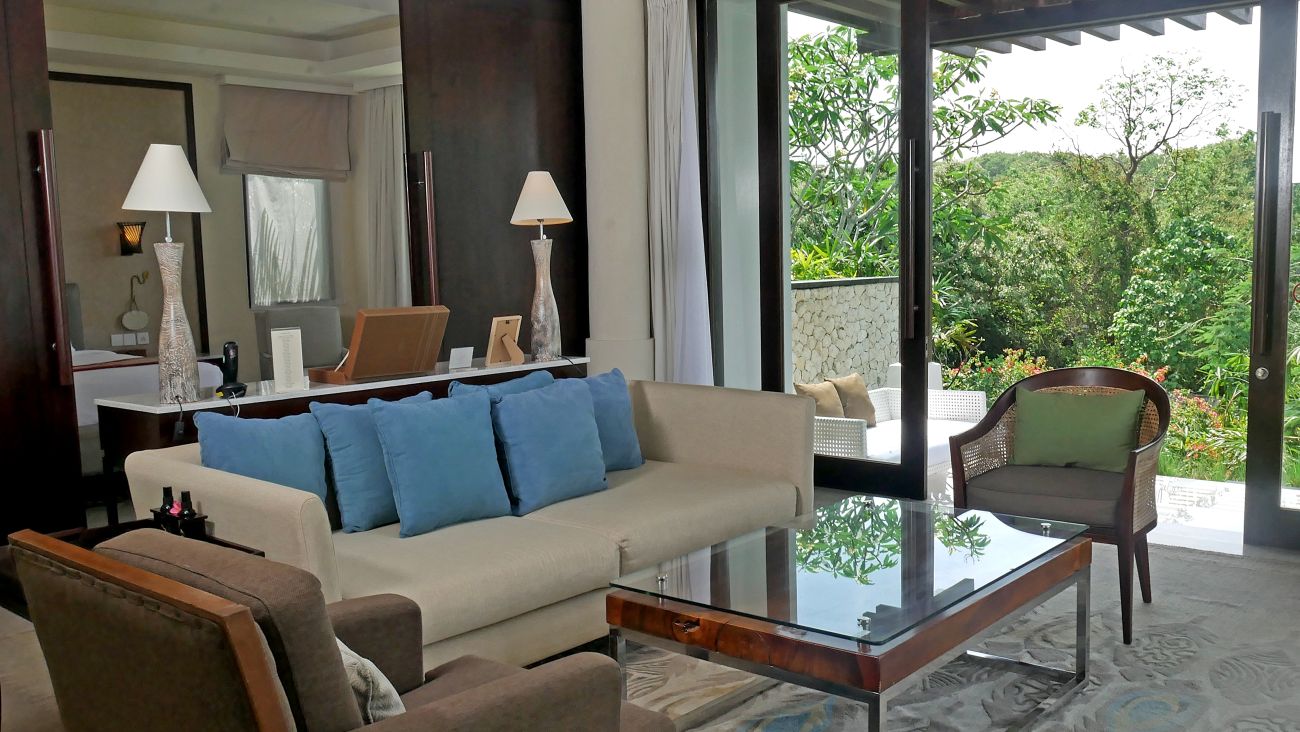 Расположены на 1 этаже корпуса Suite (West Wing), спальня с двуспальной кроватью king-size (200 x 200 см), гостиная комната с диваном и обеденным столом, гардеробная, ванная комната с ванной и душем, гостевой туалет, балкон, частый бассейн и садик (бассейн и сад занимают площадь 18 м²), панорамный вид на океан, план номера;