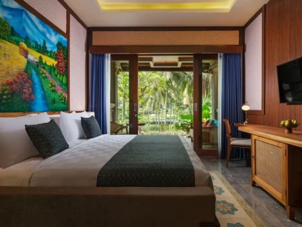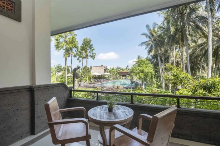 Гости могут отдыхать в садах и у двух бассейнов с видом на реку и зелёные просторы. Курорт предлагает мастер-классы по кулинарии и экскурсии на ремесленные рынки, превращая пребывание в культурный опыт Бали.